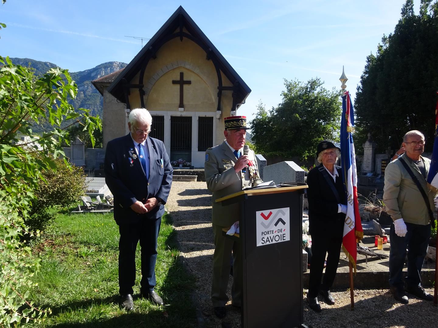 C'est en présence de de la municipalité de La Ravoire et de d'un représentant du conseil municipal jeunes, Jean-Yves Sardella, délégué général /I, René Springolo, -président du comité de La Ravoire, de Charles-Antoine Bouttaz, DGA et président du comité de Montmélian, de Xavier Forconi, président du comité de Chambéry-Cognin ainsi que de nombreux adhérents et de 14 porte-drapeaux que s'est déroulée cette cérémonie devant un public attentif.