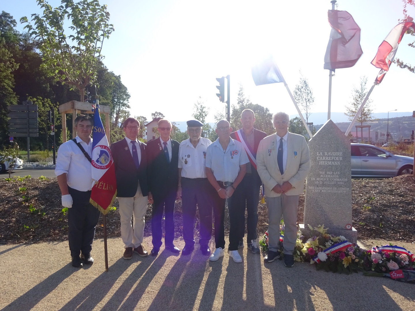 - À la stèle du Lieutenant Pianelli, en présence de sa famille. Pour mémoire, Giovanni - Jean Pianelli de nationalité Italienne entra dans la résistance le 13 mai 1943 et fut nommé chef de groupe dans le 1er bataillon des FTPF, le 1er janvier 1944, et chef d'un détachement de 30 hommes le 6 juin 1944. Il devint adjoint au chef de compagnie avec 100 hommes sous ses ordres à partir du 18 juillet 1944. Promu lieutenant en vertu des pouvoirs conférés par télégramme du général Koenig en date du 6 juin 1944, il fut arrêté, torturé puis fusillé par les Allemands le 20 août 1944 à l'âge de 37 ans au lieu-dit Champfleury dans la commune de Chindrieux.