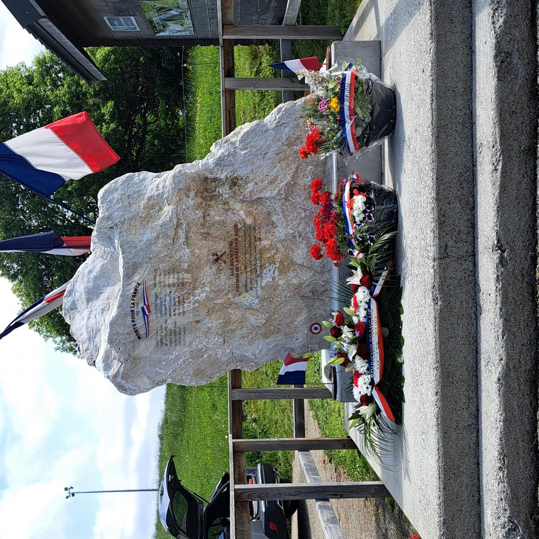 Suivie de la cérémonie de recueillement, au chef-lieu, devant la stèle, en hommage au groupe Franc "Michel" lieu où le chef Michel Mouhica de l'armée secrète fut abattu ainsi que 3 de ses compagnons à l’aube de la libération. Ils sont morts pour que nous puissions vivre libres.