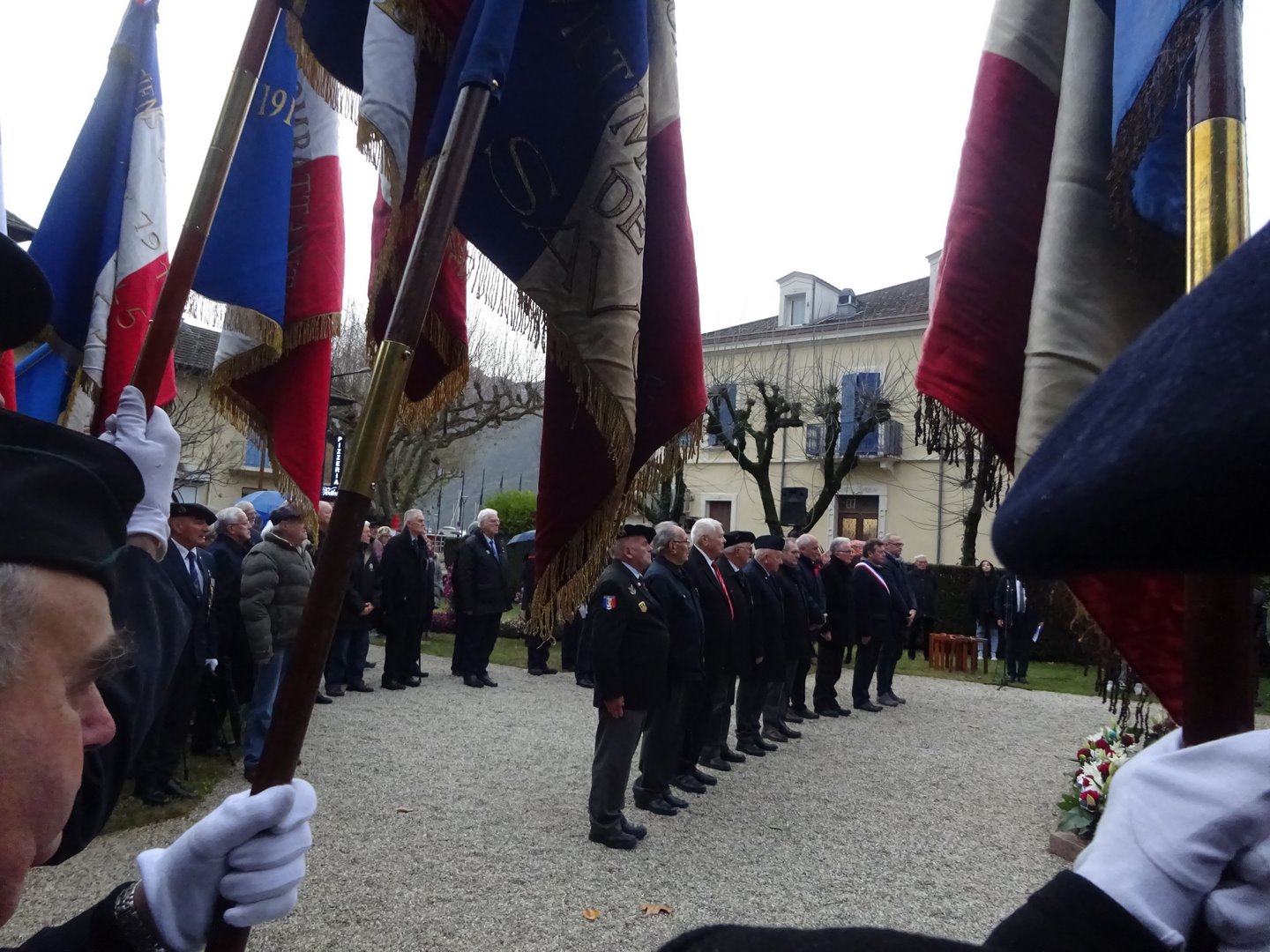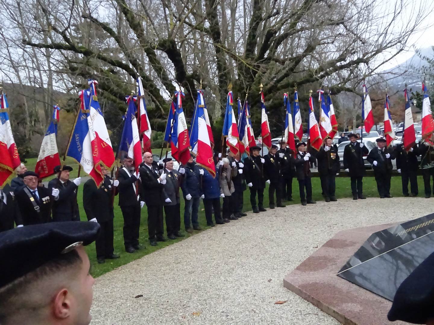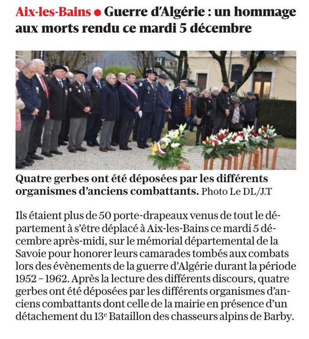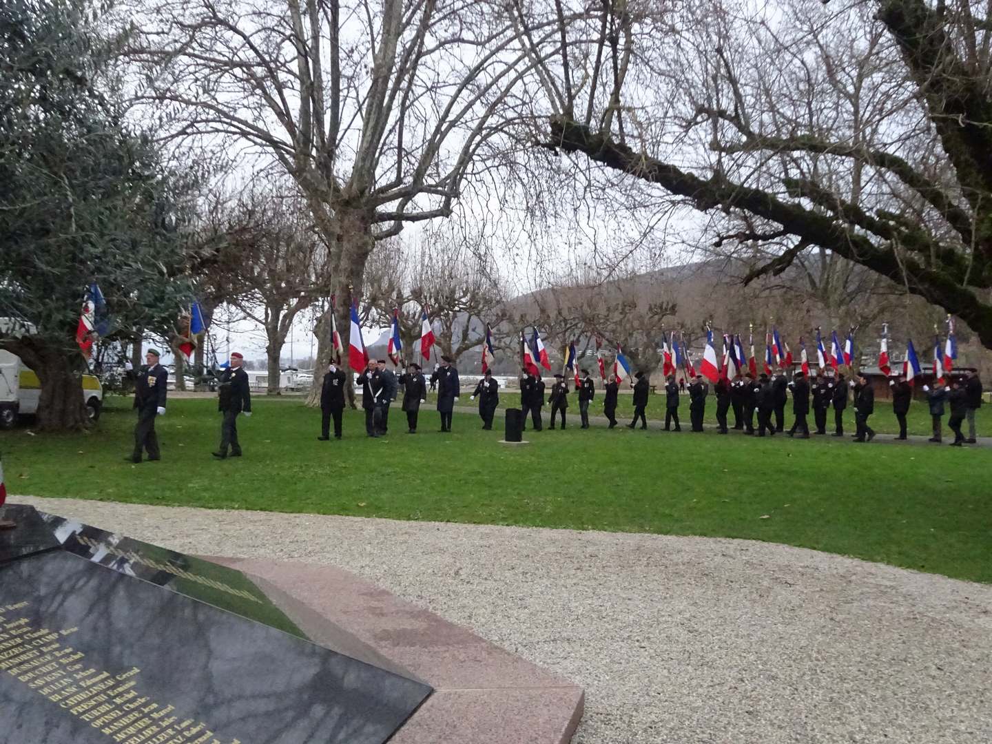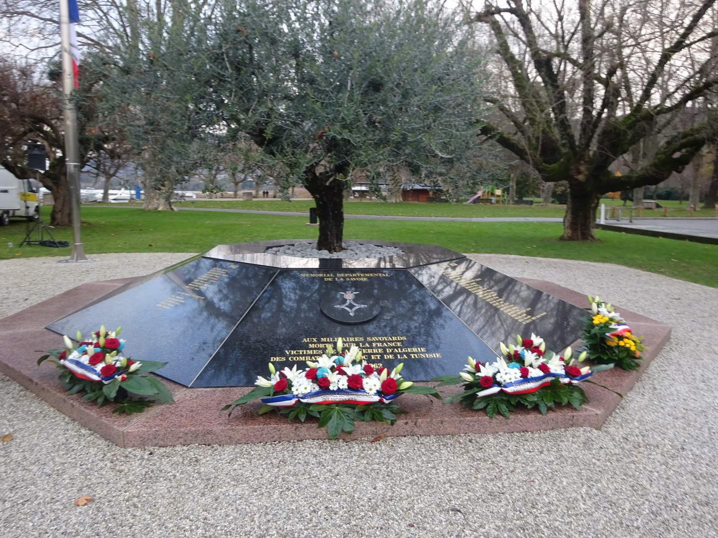 Cérémonie du 05 décembre 2023, square Marcel Bigeard,en présence des autorités civiles et militaires. Etaient présents plus de 50 drapeaux (Tarentaise, Maurienne, bassin chambérien, Aix les Bains...), ainsi qu'un piquet d'honneur du 13è BCA pour honorer les Morts pour la France.