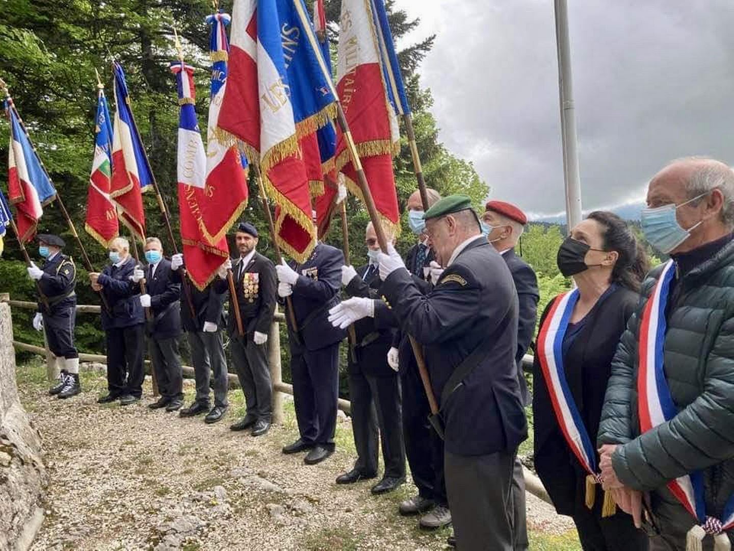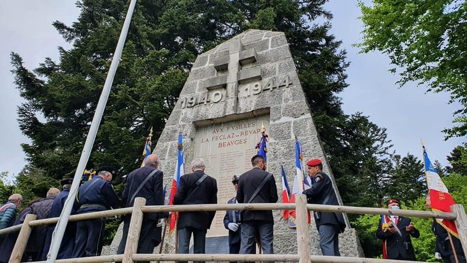 Cette cérémonie organisée par le comité local d’Aix les Bains, elle commémore le 77ème anniversaire des combats du REVARD du 10 juin 1944 et dépôts de gerbes aux monuments aux morts de la Féclaz et du Sir.