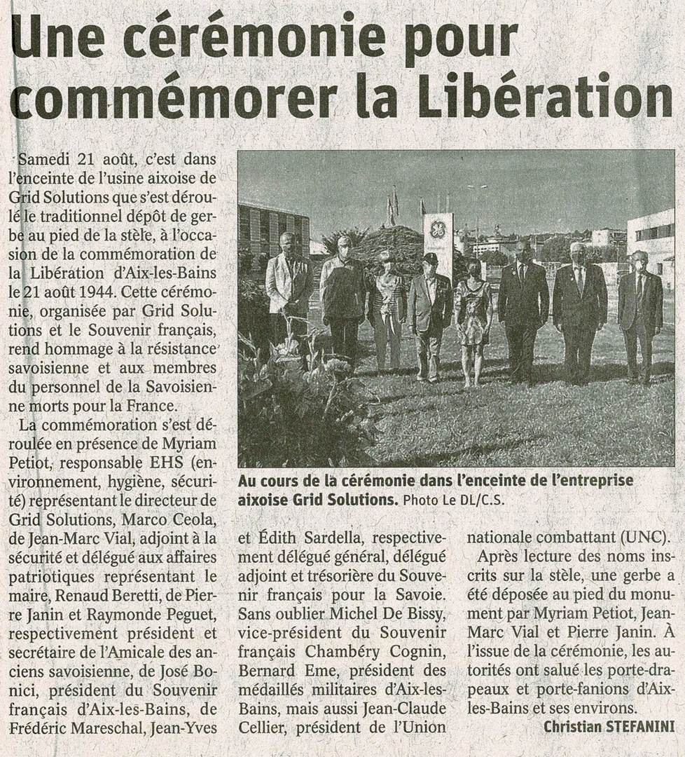 Cérémonie organisée par Général Electrique Power, Grid Solution et Le Souvenir Français, Comité d’Aix les Bains.