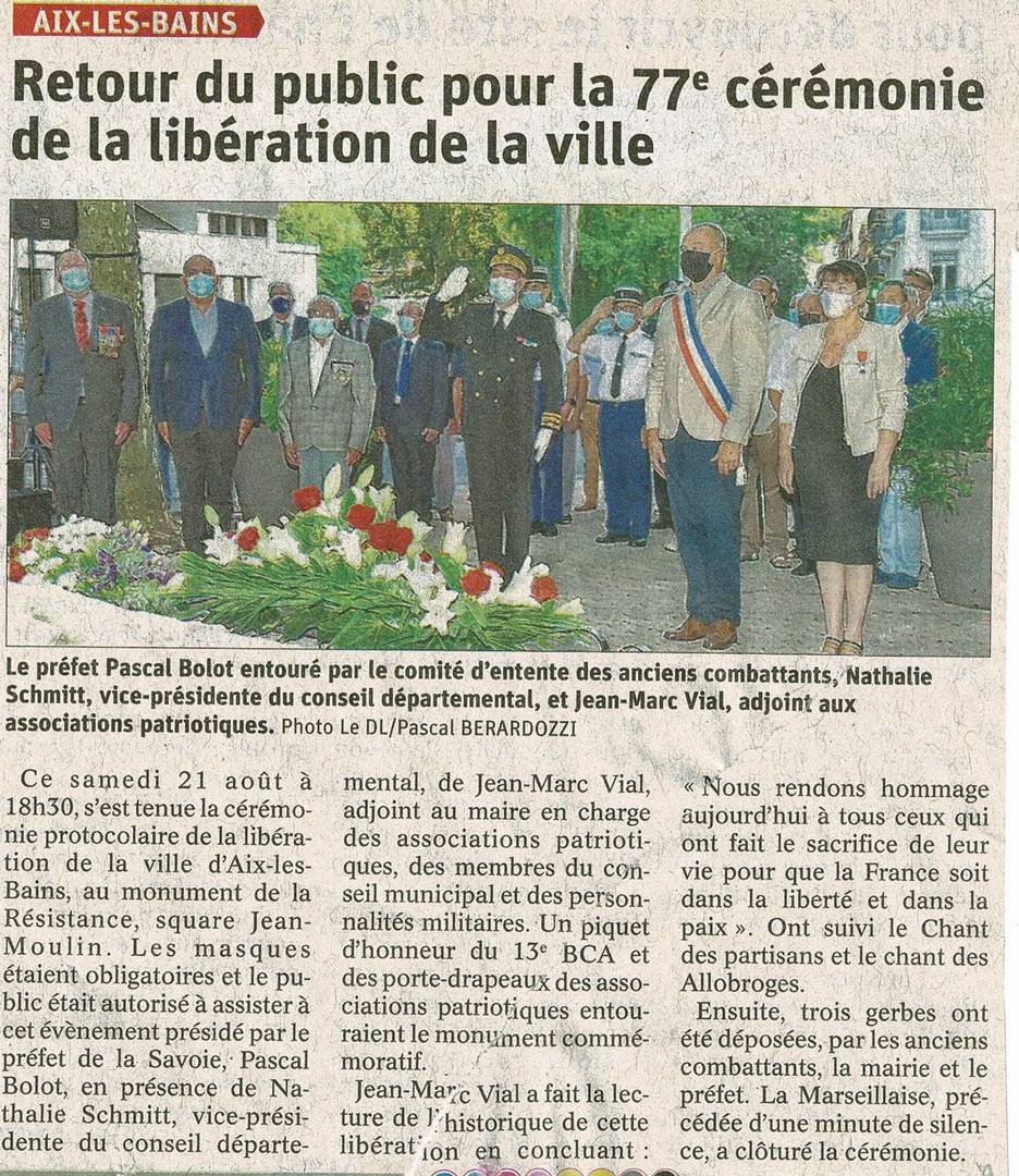 Samedi 21 août 2021 se sont déroulées deux cérémonies pour commémorer le 77ème anniversaire de la libération de la ville.
