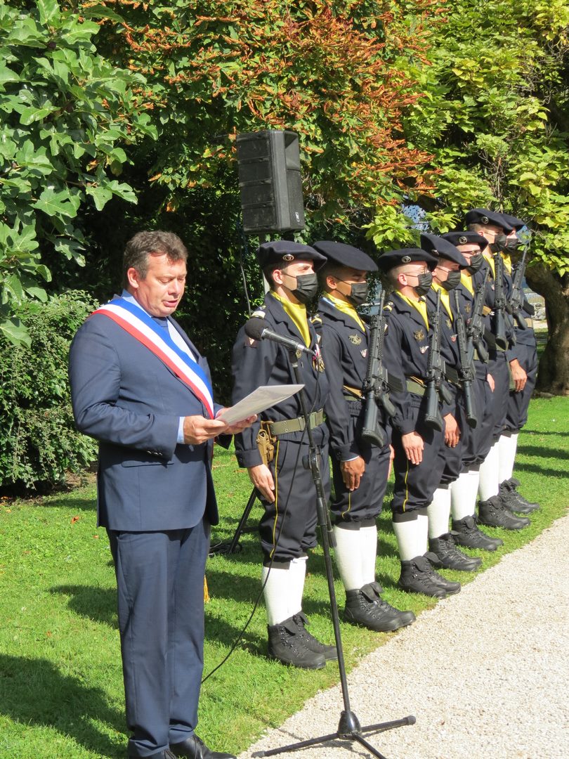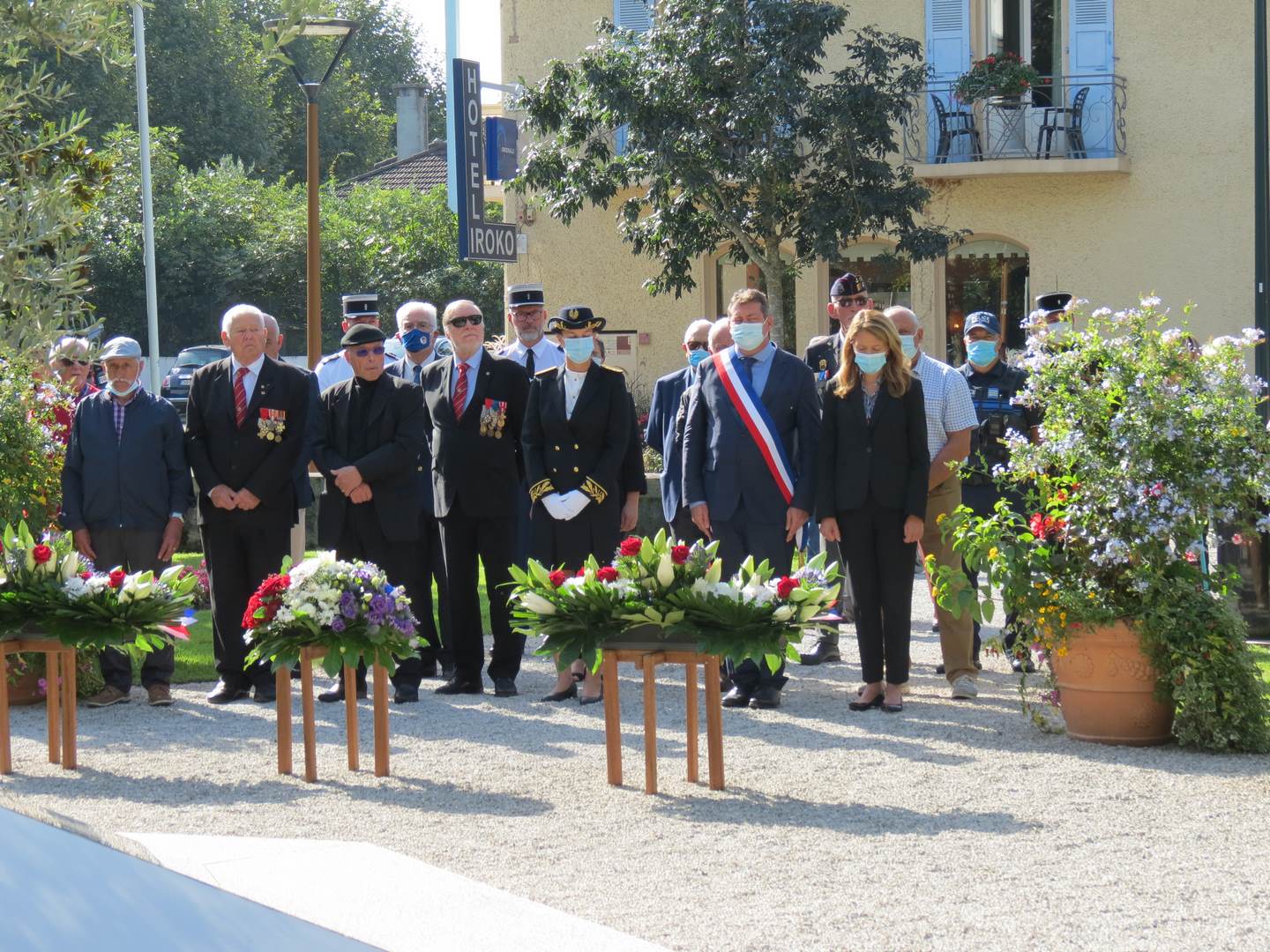 Le samedi 25 septembre 2021, s'est déroulée au Mémorial des Anciens Combattants, square Marcel Bigeard, avenue du Grand Port à Aix-les-Bains, la cérémonie en hommage aux Harkis et autres membres des formations supplétives, en présence des différentes autorités civiles et militaires, de Madame Juliette Part, sous-prefète de Chambéry, de Monsieur Renaud Beretti, Maire d’Aix les Bains, de Mesdames Marie-Pierre Montoro-Sadoux, 1ère adjointe et Conseillère régionale, Claire Koch-Crousier, directrice de l'ONAC VG, d'une section du 13ème BCA, des anciens combattants et porte-drapeaux, des associations mémorielles, de la Délégation Générale du Souvenir Français de Savoie représentée par Jean-Yves Sardella, délégué général adjoint de la Délégation Générale de Savoie et du comité d'Aix-les-Bains.