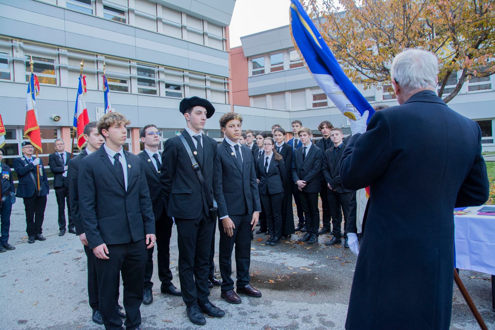 Après avoir établi un partenariat significatif avec l'Association Nationale des Descendants des Médaillés de la Résistance, les lycéens furent émus de recevoir le drapeau siglé Savoie, symbole puissant de transmission et de perpétuation des valeurs.