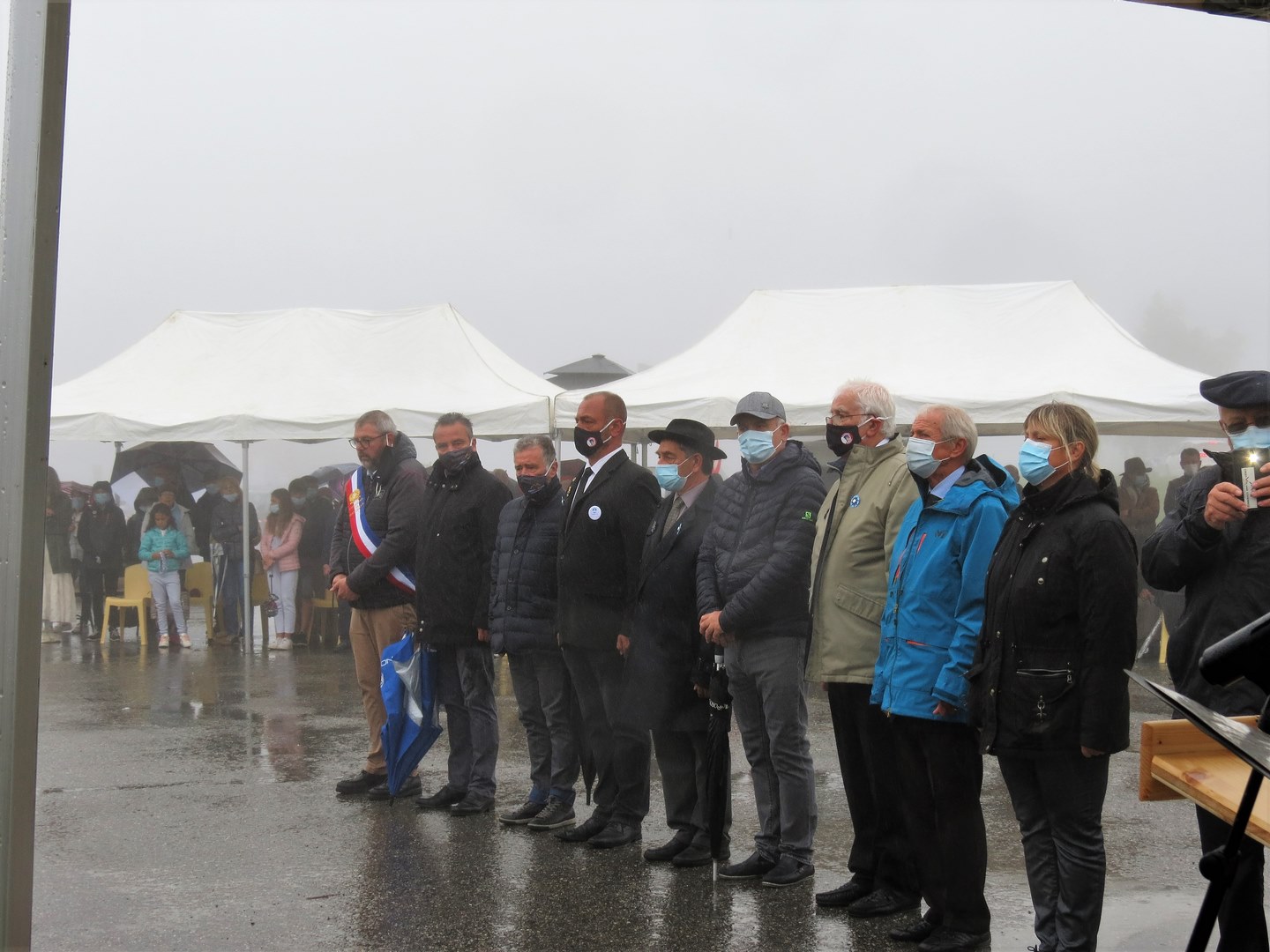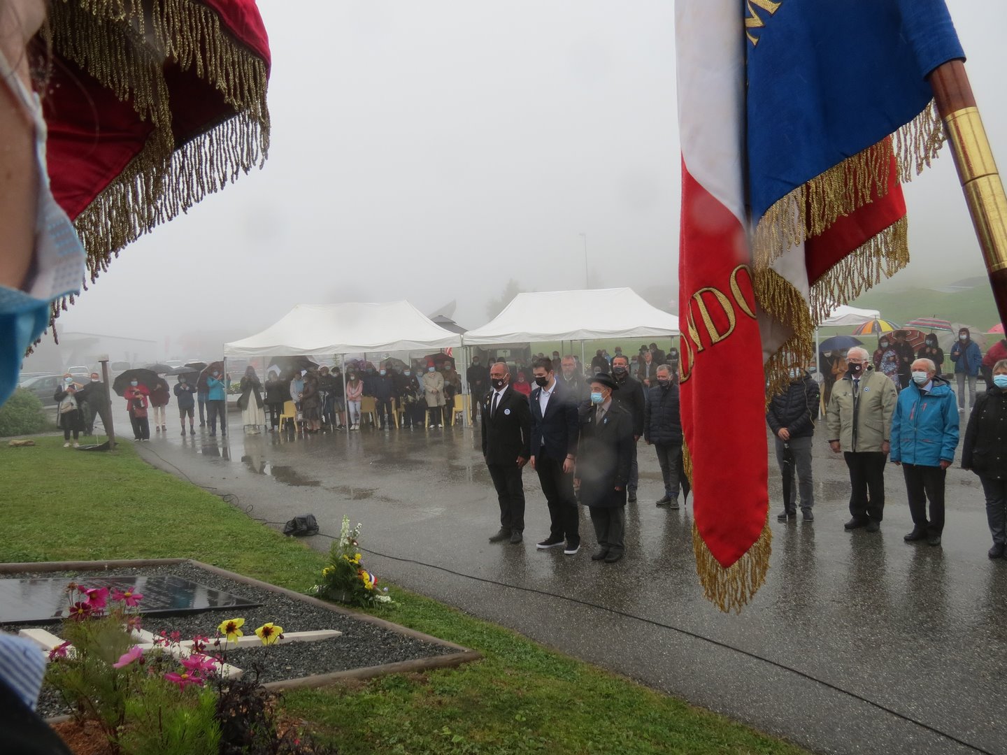 C'est sous la pluie et dans le brouillard que nous avons, dimanche 1er août 2021, commémoré le 77ème anniversaire du parachutage des Saisies en présence des personnalités civiles et représentants des associations mémorielles, des jeunes de l'association Le fil de Marianne, de 35 porte-drapeaux..
