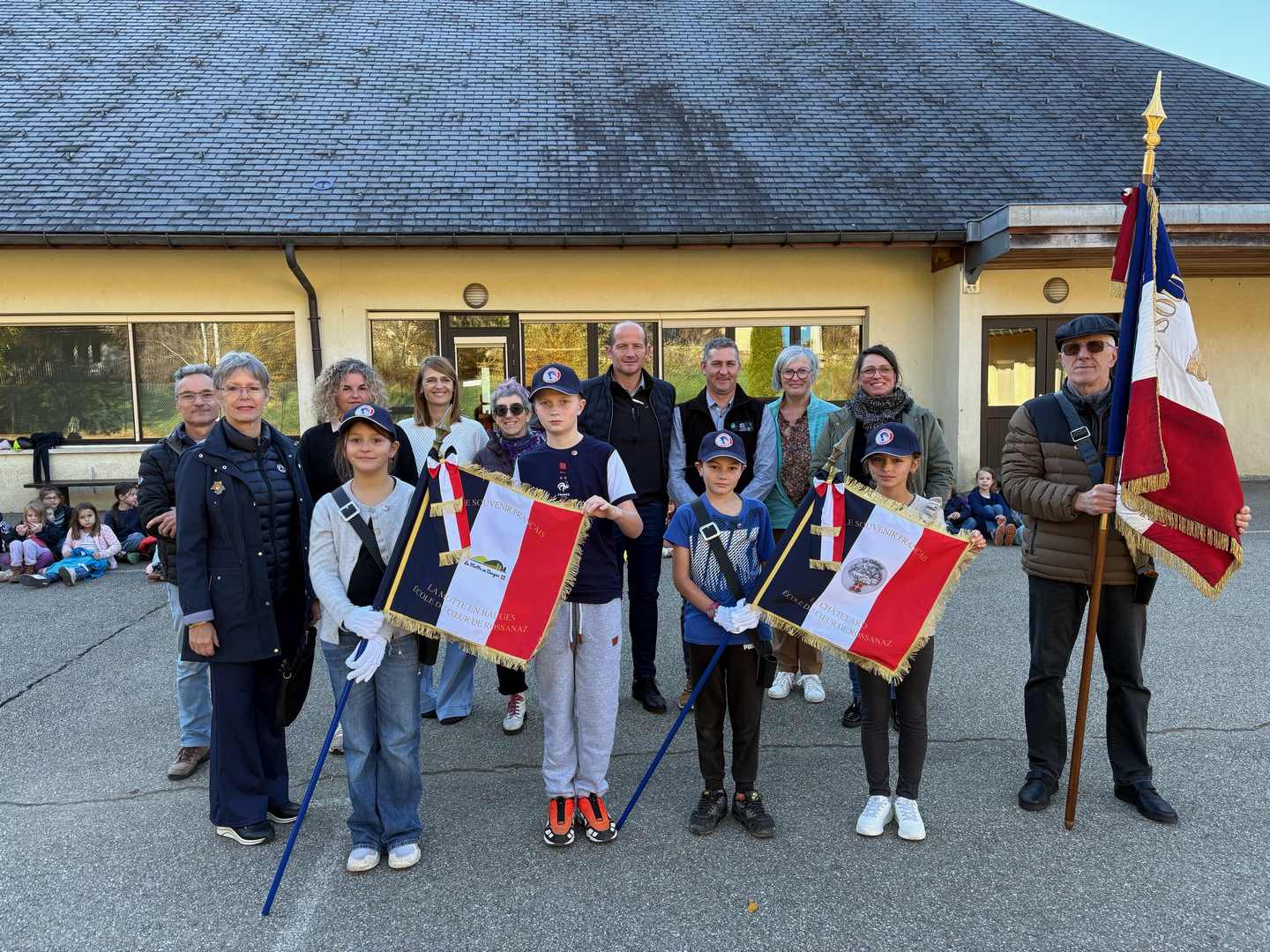 Les élèves étaient fiers de porter le drapeau et furent présents lors de la cérémonie cantonale du 11 novembre à La Motte en Bauges.