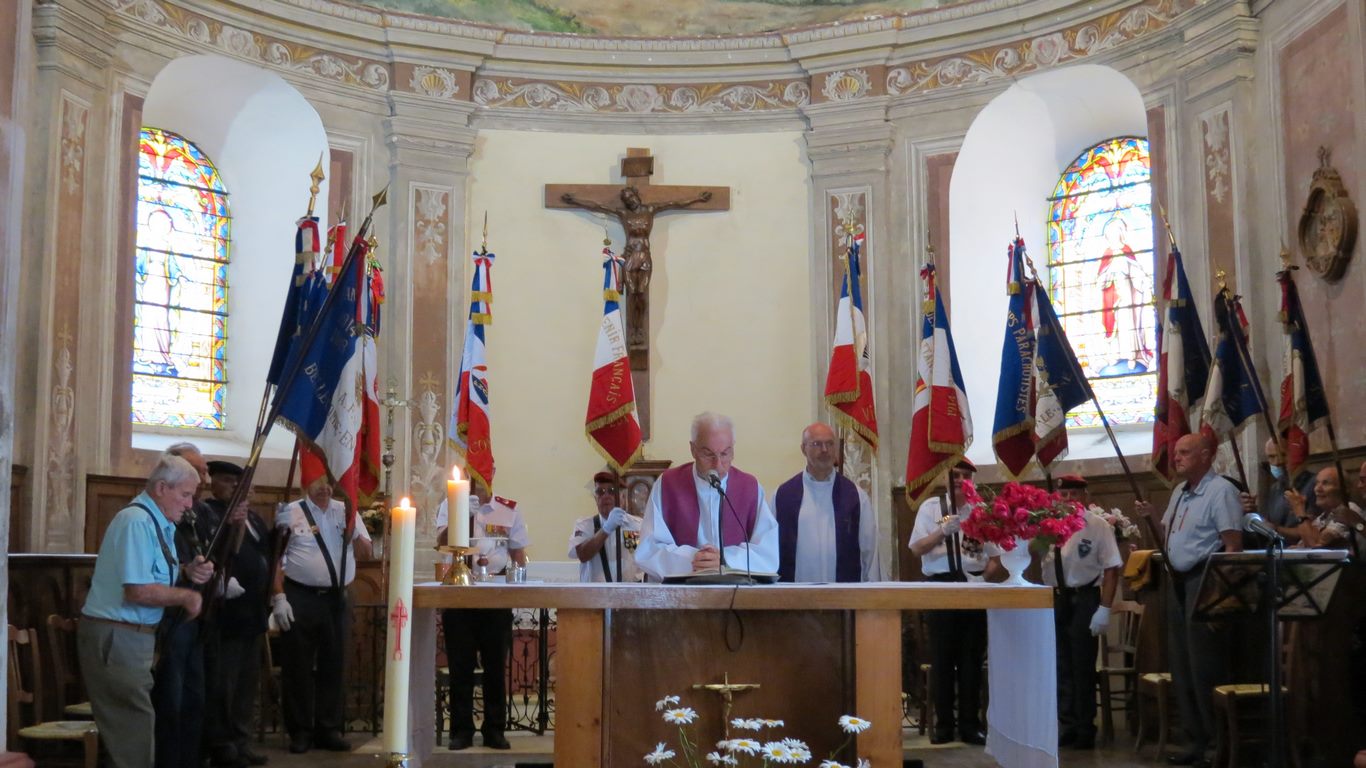 Après un moment de recueillement sur la tombe de Lucien Chatelain, ancien président, et devant la tombe rénovée de Camille Cottet, Mort pour la France, nous avons assisté à la messe souvenir en hommage aux 11 fusillés, dont les plus jeunes avaient tout juste 16 ans et Monsieur Ballaz, maire de la commune âgé de 70 ans, puis à la cérémonie devant la stèle des fusillés.