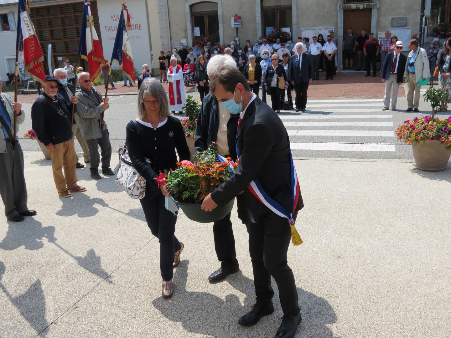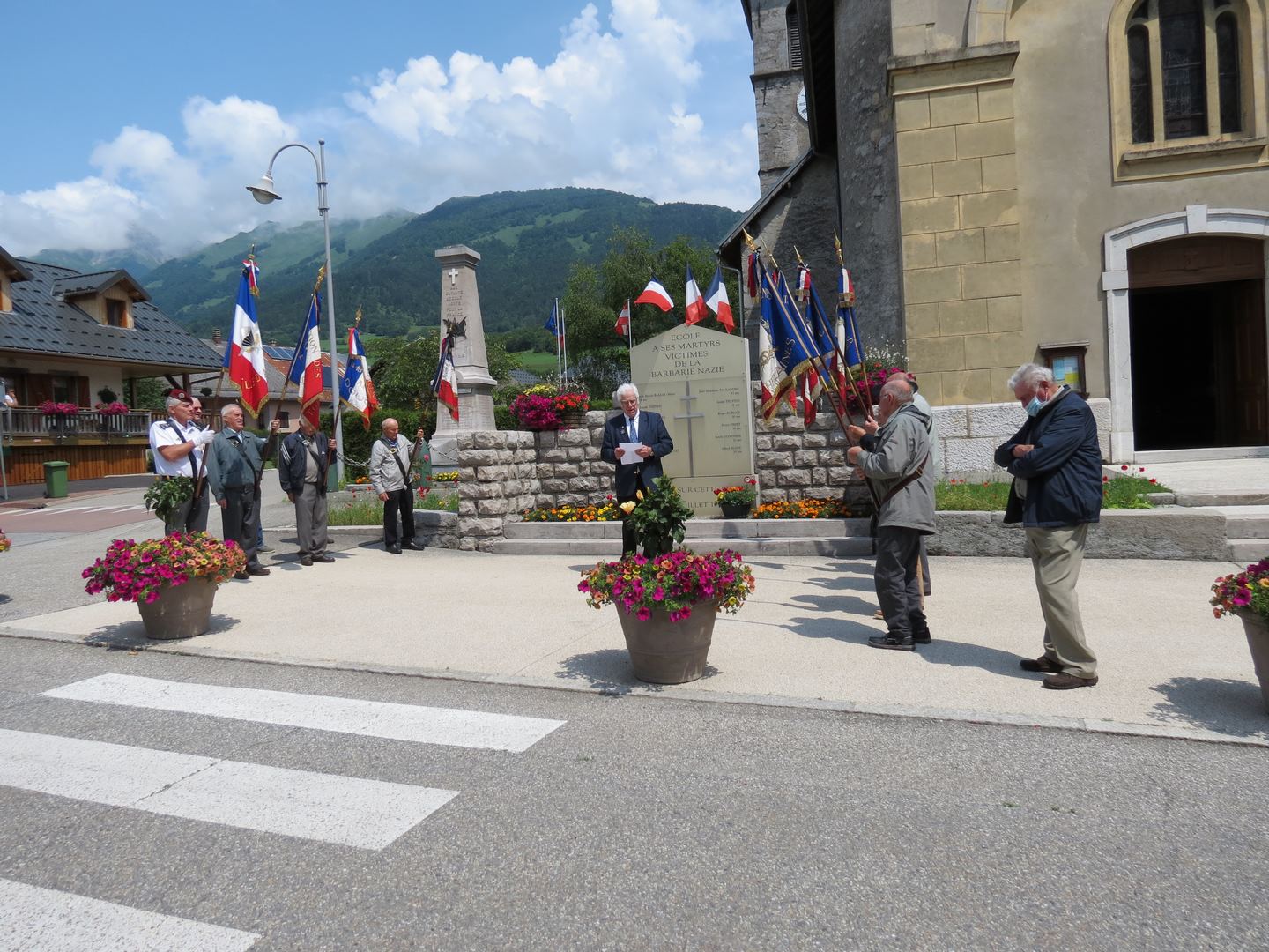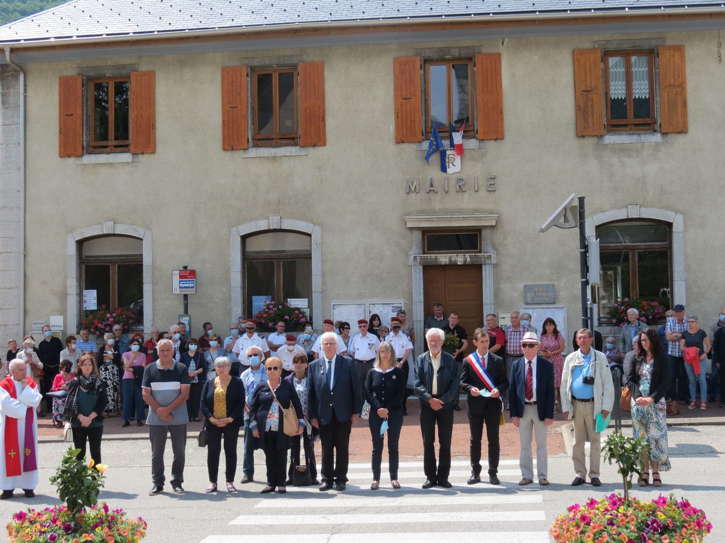 Mardi 6 juillet 2021, après la cérémonie religieuse,s'est déroulée la cérémonie en hommage aux Fusillés d'École en Bauges. Après