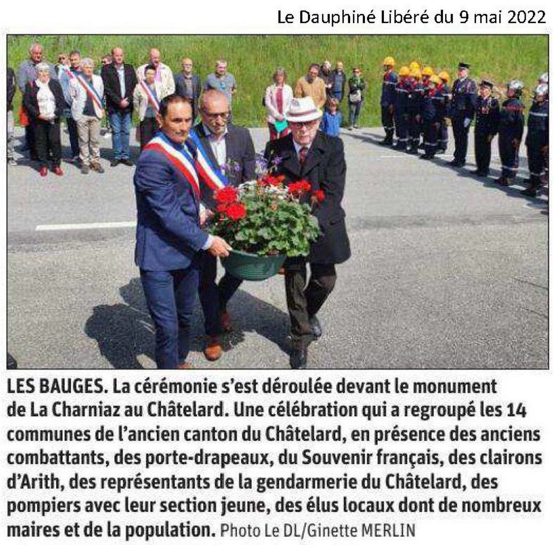 Cette année, la cérémonie du 8 mai 1945 s'est déroulée à la stèle de La Charniaz. Elle a regroupé les 14 communes de l'ancien canton du Châtelard.