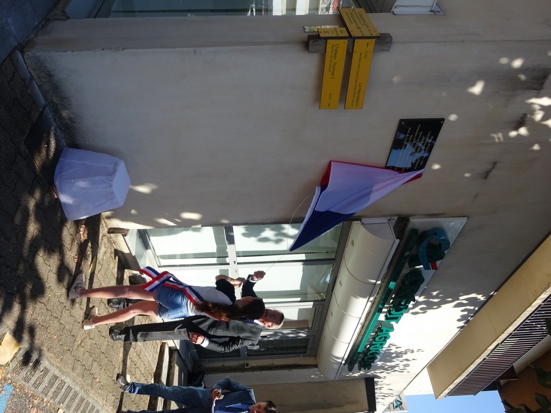 Suivi à 11 h 30, place du commandant Jeandet à côté de la mairie, une plaque fut dévoilée en son hommage par le général Claude Grausdemouge et un enfant de la commune.