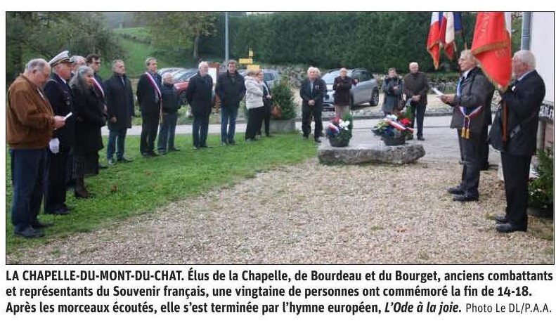 Vendredi 11 novembre 2022, C'est en présence des autorités civiles et militaire que se sont déroulées les cérémonies pour le 104ème anniversaire de l'armistice de 1918 sur les communes du Bourget du Lac, Bourdeau et La Chapelle du Mont du Chat.