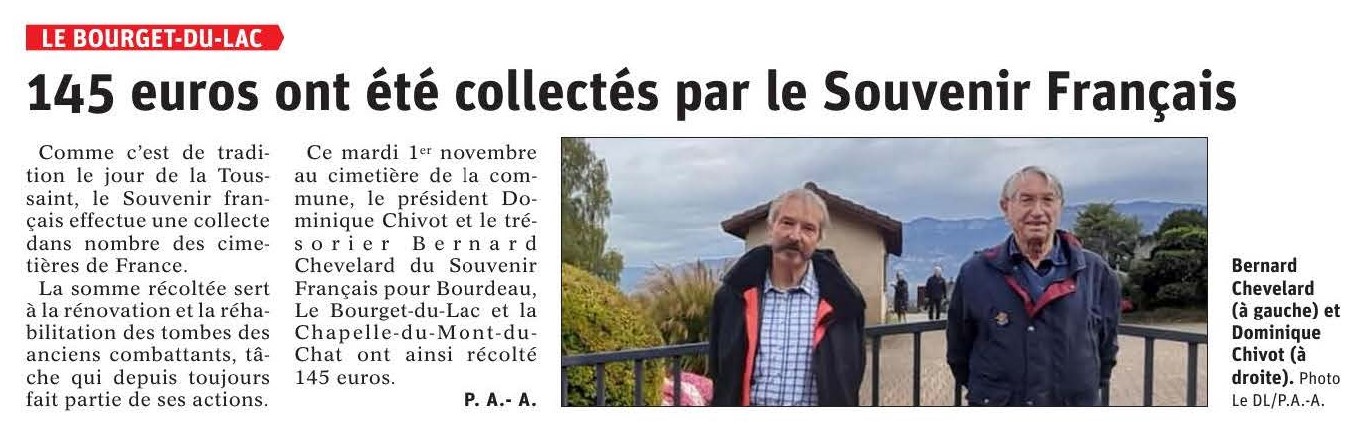 Le 1er novembre, le président, Dominique Chivot et le trésorier, Bernard Chevellard, ont quêté à l'entrée du cimetière du Bourget du Lac.