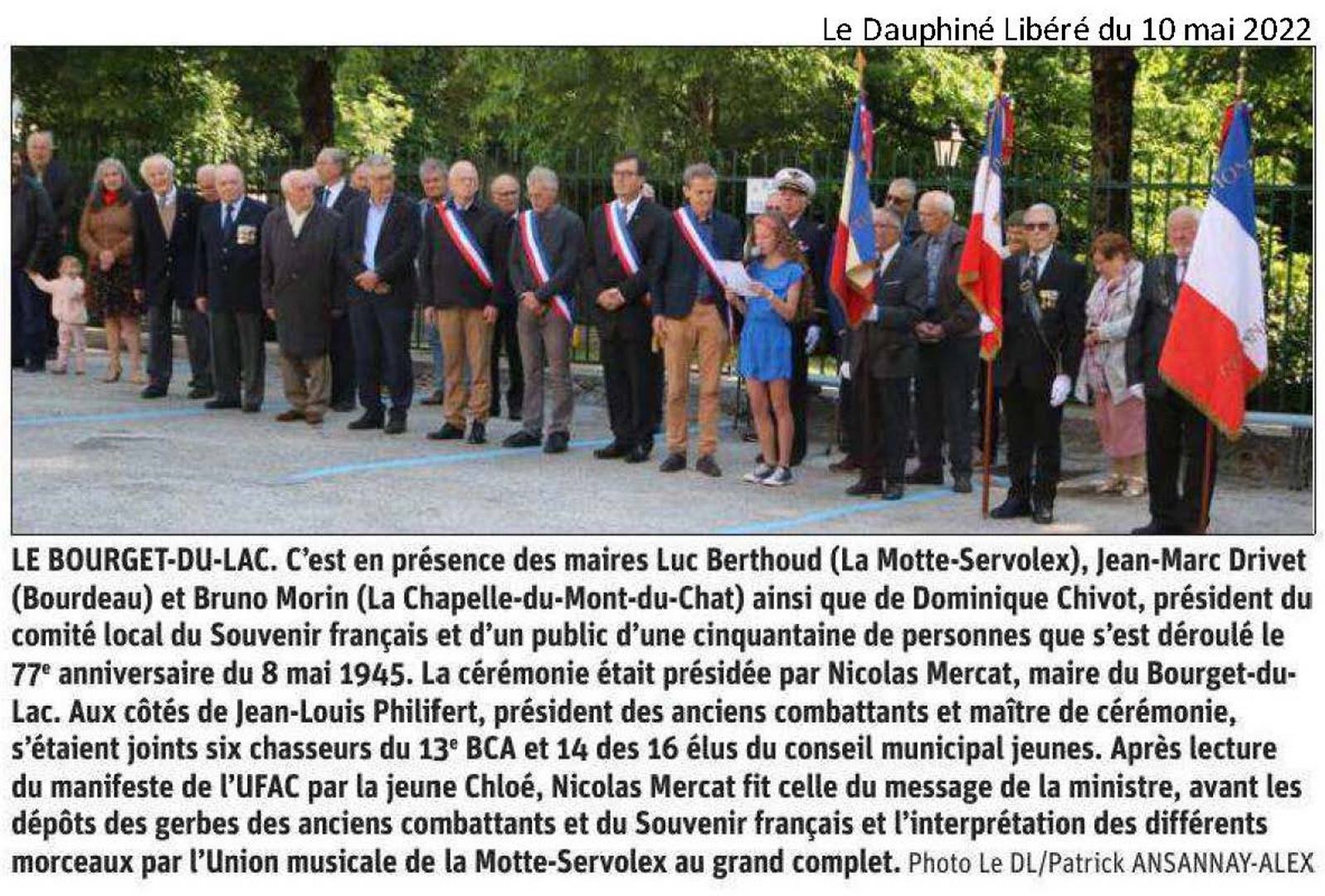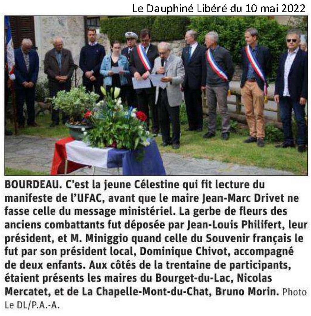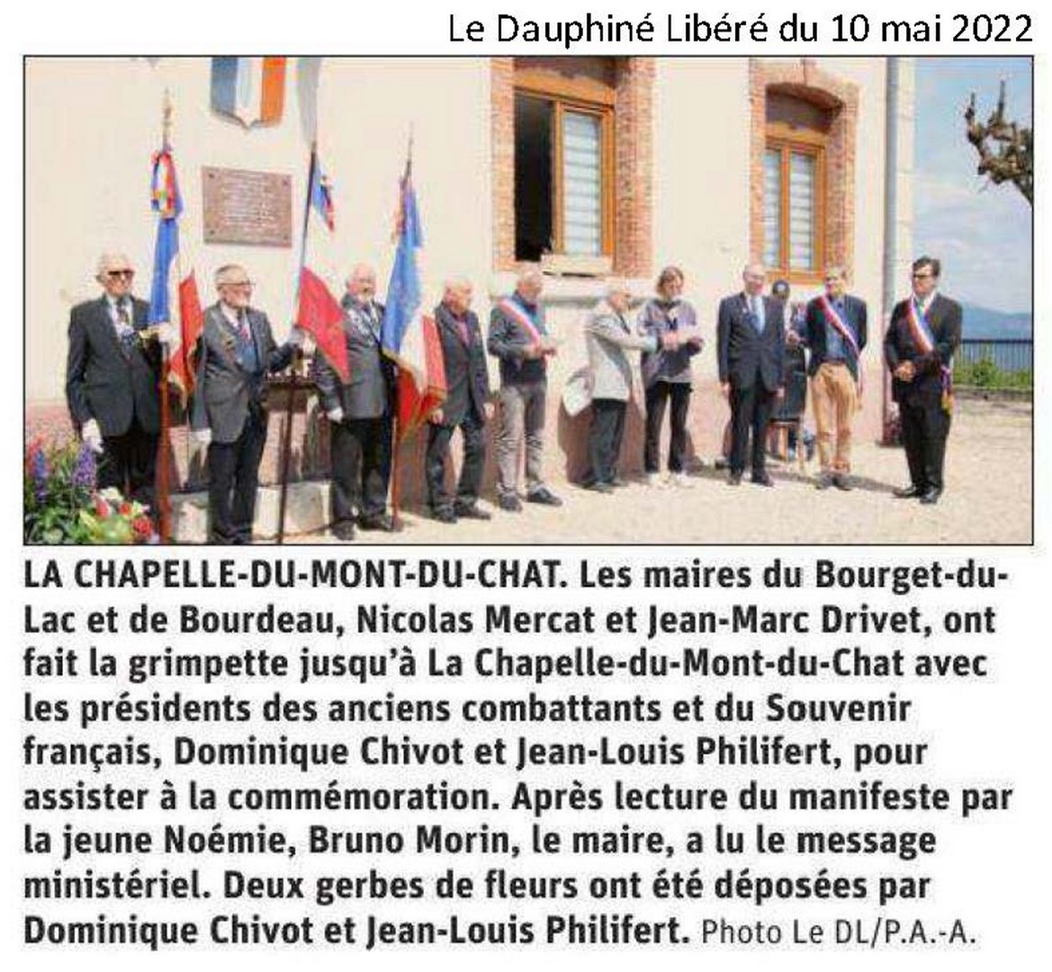 Les maires du Bourget du Lac, de Bourdeau et de La Chapelle du Mont du Chat, les Anciens Combattants et le Souvenir Français ont célébré, dans les trois communes le 77ème anniversaire du 08 mai 1945.