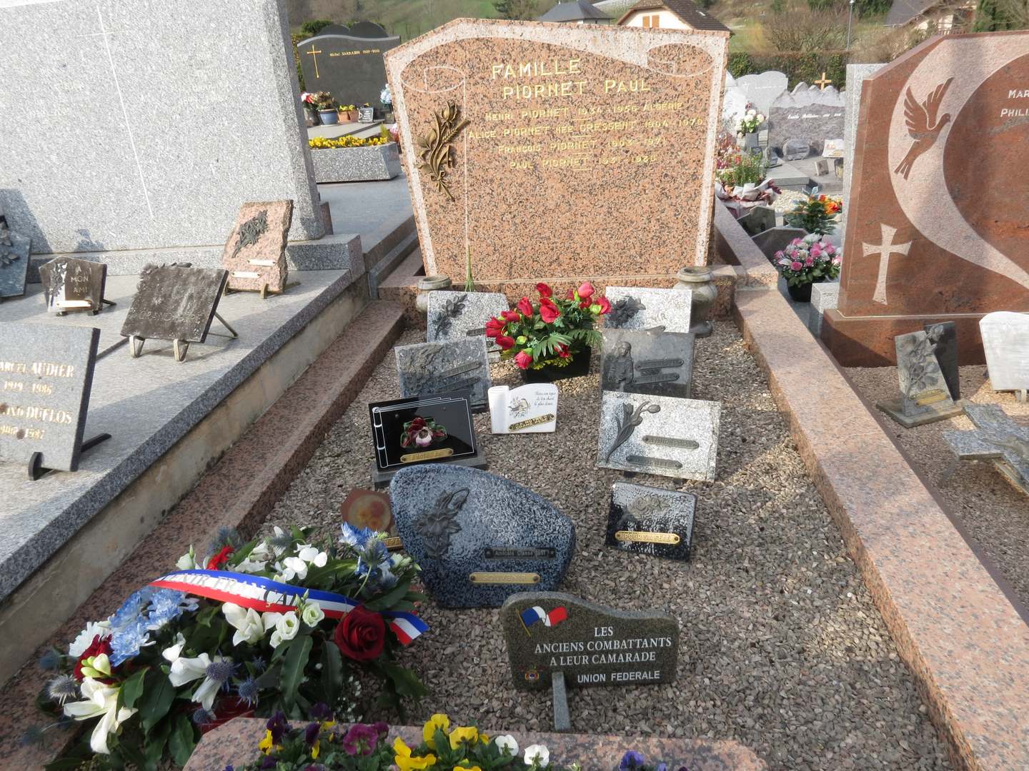 Le Bourget du Lac, samedi 19 mars, la journée à débuté par un dépôt de gerbes par le Souvenir Français et d'une plaque par l'Union Fédérale sur les tombes de trois combattants, Henri Piornet, Joseph Savonnet et le lieutenant colonel Robert Rodier, morts en Algérie. Après chaque dépôt, la Marseillaise a été chantée a cappella.