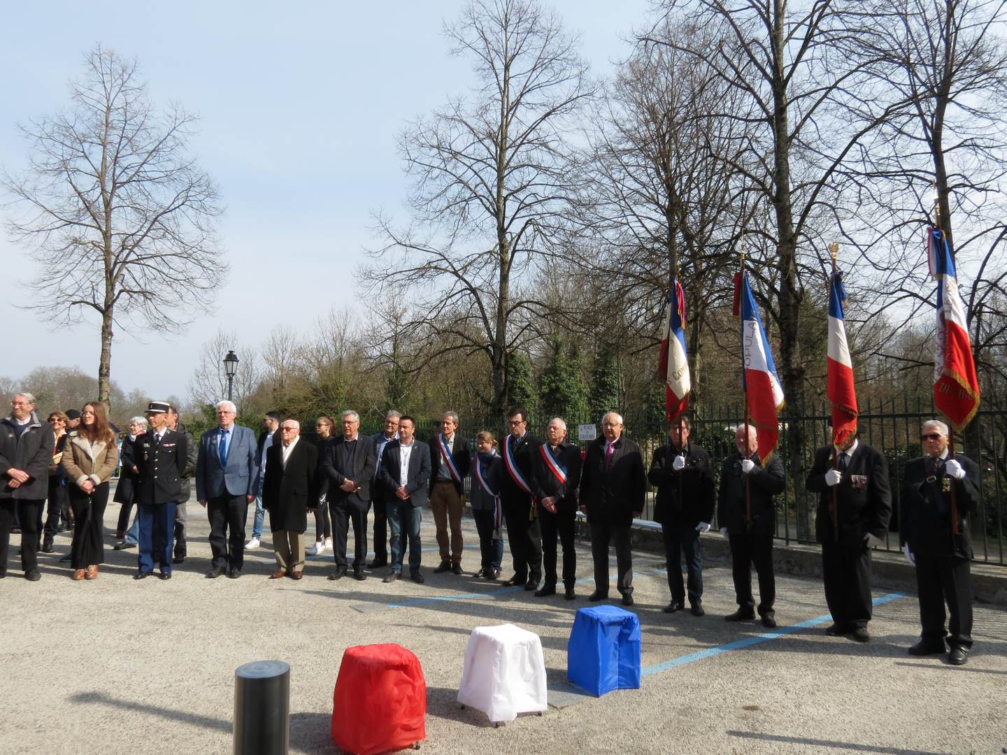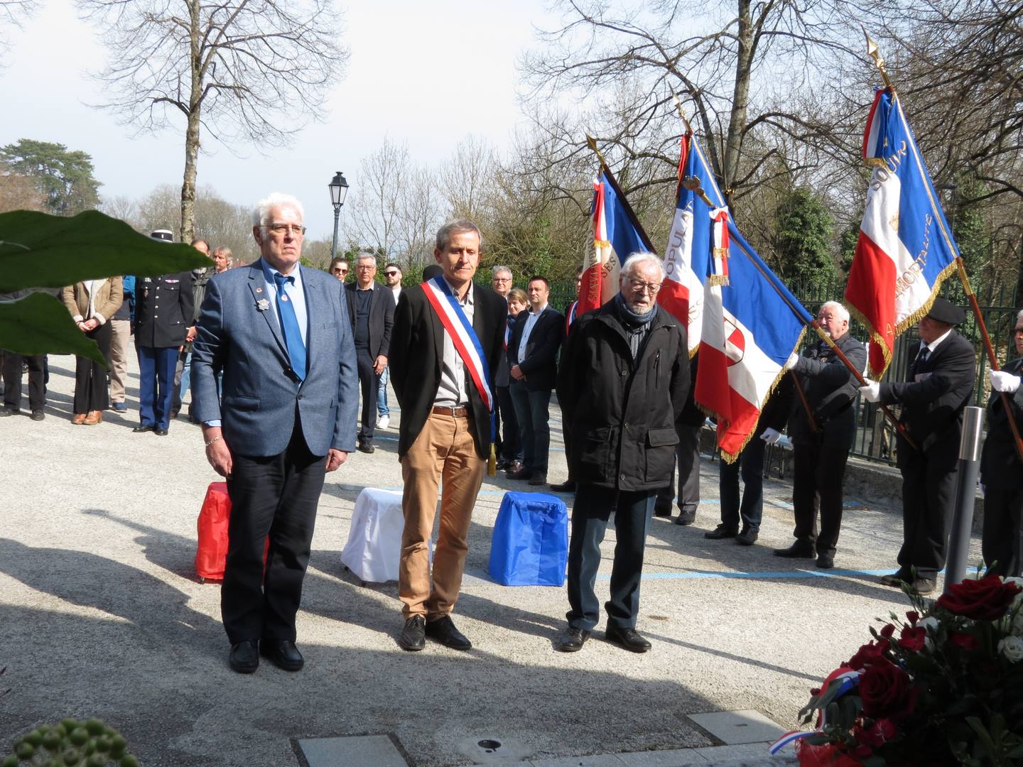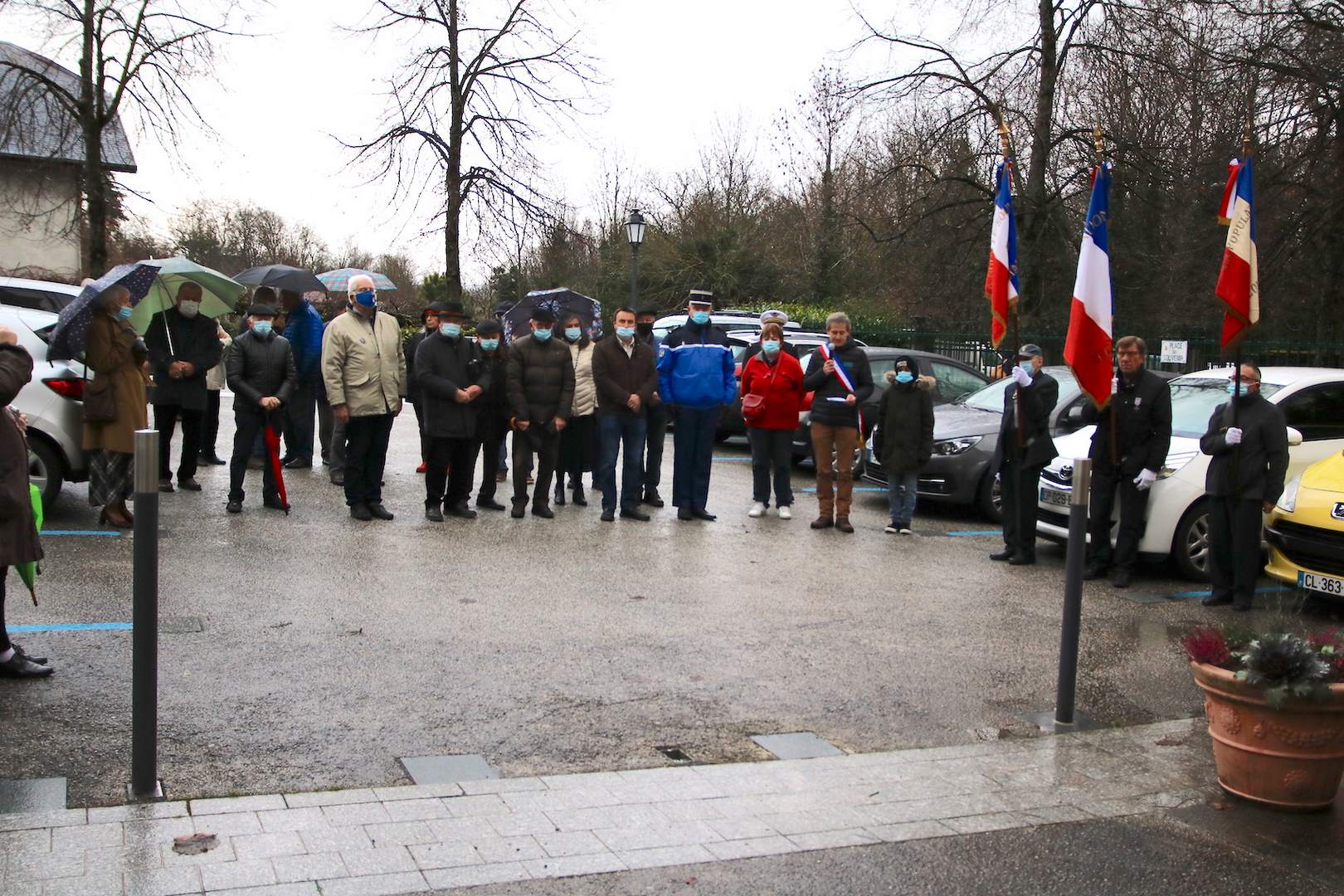 Cérémonie du 05 décembre 2021 aux monument aux Morts du Bourget du Lac en présence des autorités civiles et militaires et des portes drapeaux.