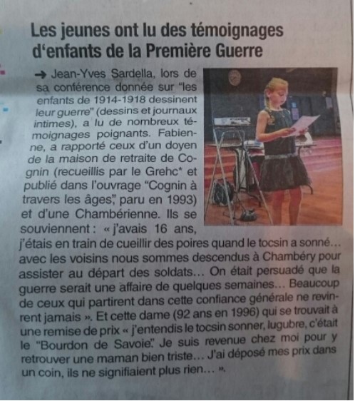 Dans les manifestations à venir, une soirée en hommage aux « Ecrivains Combattants » (morts pour la France et ceux qui en sont revenus avec entre autres Henry Bordeaux) aura lieu salle de la Forgerie vendredi 2 décembre à partir de 18 h 30 avec la participation du GREHC et de nombreuses associations d’histoires du département qui interviendront sur ce sujet. Autre événement départemental, le 13 mai 2017 à 19 heures à la Forgerie, avec une conférence sur « les enfants de 14-18 dessinent leur guerre ». Elle sera animée par Frédéric Mareschal et Jean-Yves Sardella.