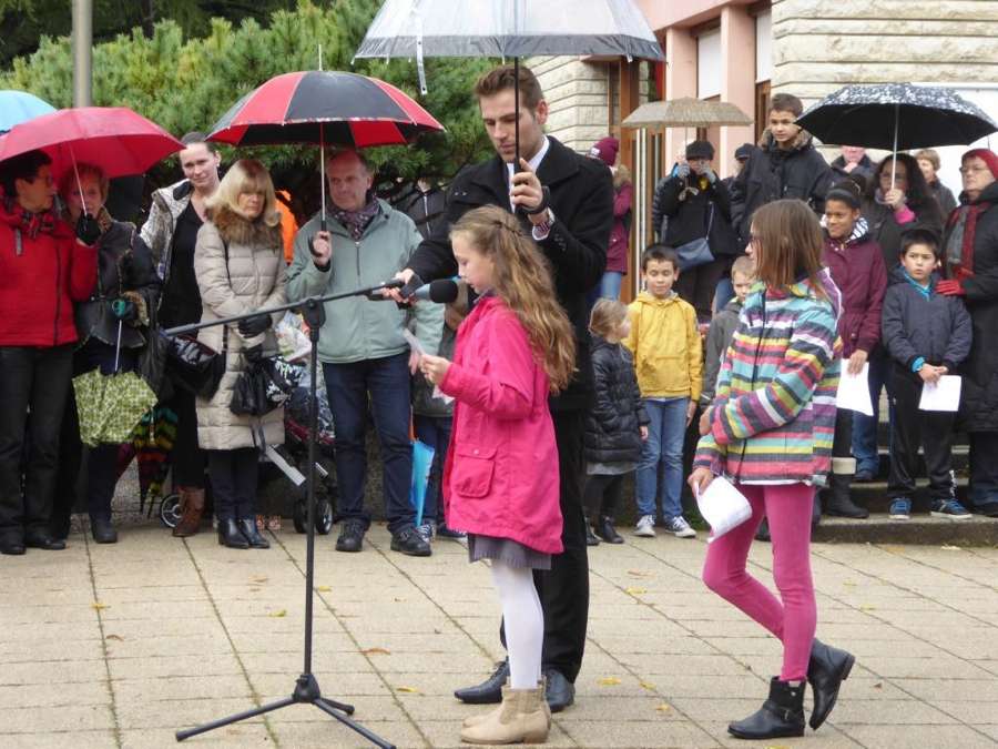 Lors de la cérémonie de la commémoration de l’armistice de 1914-1918, au monument aux morts près de la mairie vendredi 11 novembre, les élèves de CM1 et CM2 de l’école élémentaire de la Forgerie étaient présents ainsi que leur enseignante. Ils ont lu à tour de rôles des textes de poilus, ont déposé des bougies au pied du monument aux morts et ont interprété la Marseillaise, accompagnés par l’Harmonie de Cognin. Monsieur Ponçon, porte-drapeau, a reçu également une médaille pour 10 années de bénévolat, par François Desgeorges, président des Anciens Combattants.
