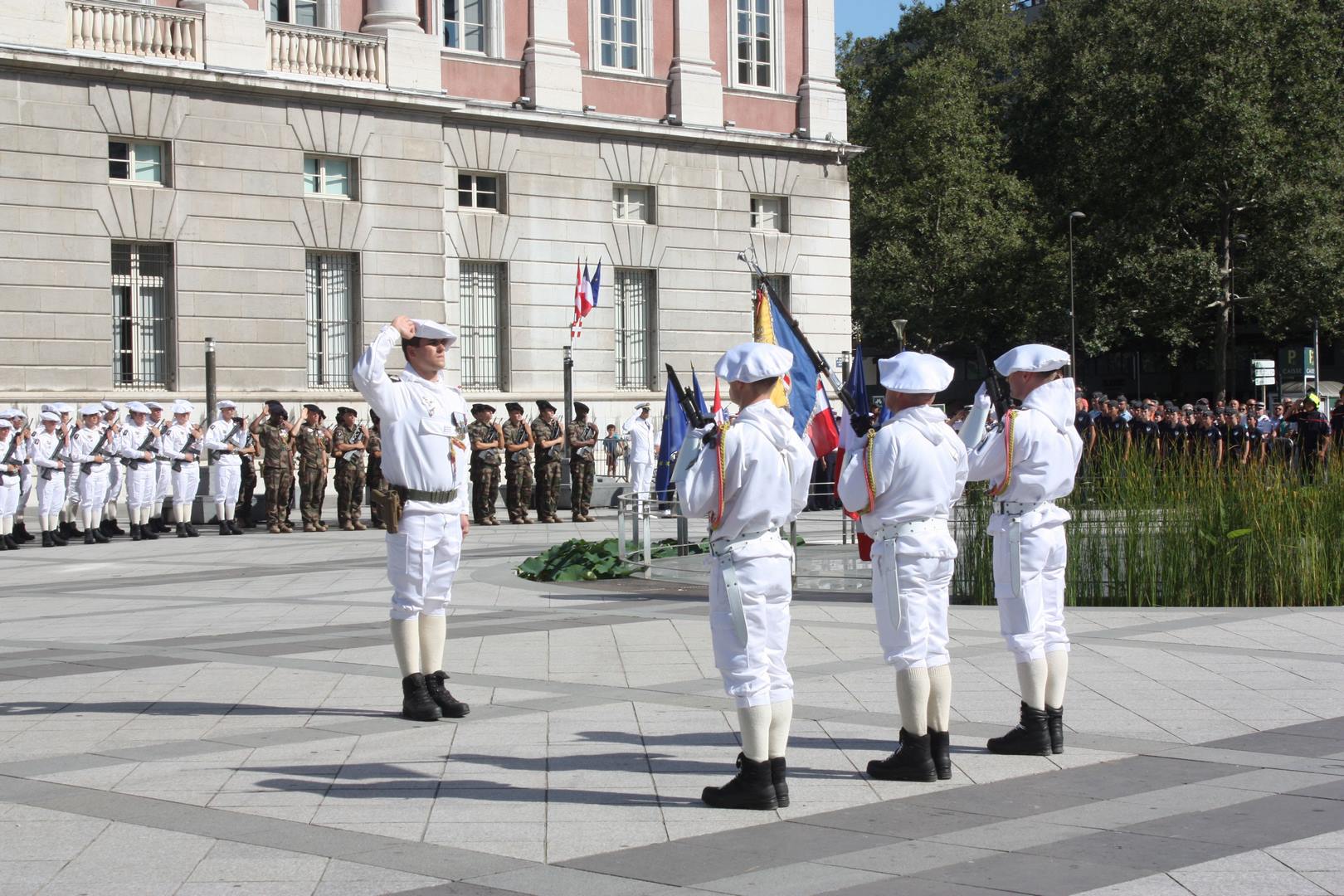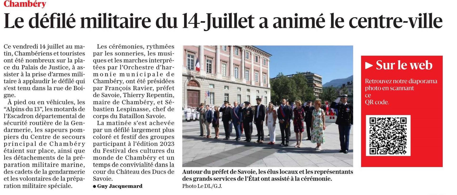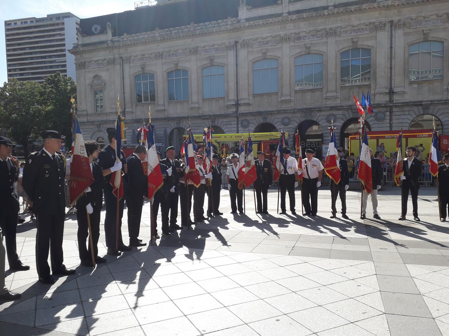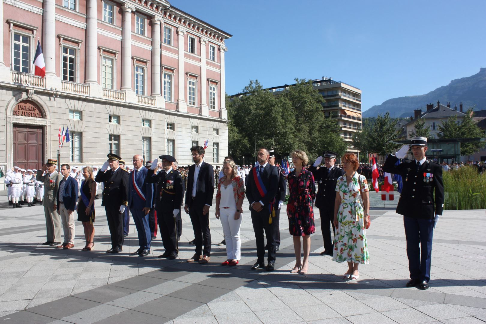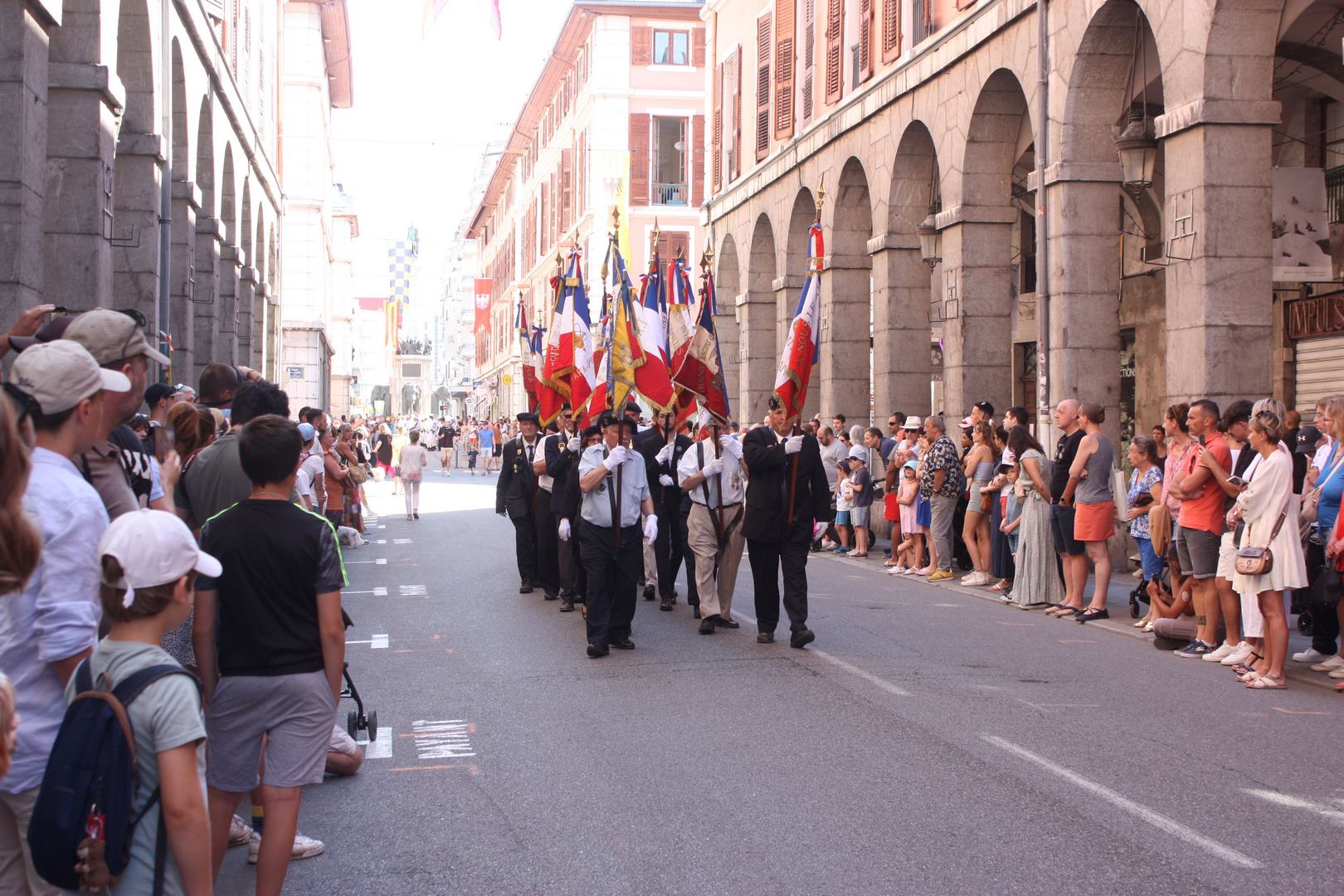 Prise d'Armes place du Palais de justice et défilé rue de Boigne, pour le 13ème BCA, en présence des autorités civiles et militaires, des Cadets de la Gendarmerie, des associations mémorielles, des porte-drapeaux et de nombreux spectateurs.