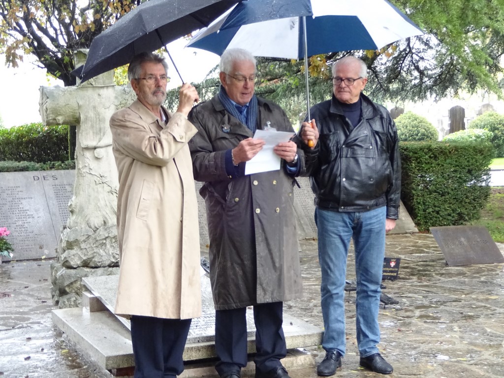 Lundi 4 novembre, au cimetière de Charrière-Neuve, s'est déroulée la cérémonie de commémoration, de l'Armistice italien du 4 novembre 1918, ainsi que la Journée de l'unité nationale italienne, organisée par le COMITES (Association des italiens à l'étranger) de Chambéry. C'est en présence de Mr Del Treppo, son président, et de la Délégation Générale du Souvenir Français de Savoie, ainsi que des porte-drapeaux, qu'une gerbe a été déposée devant la crypte du cimetière de Charrière-Neuve où reposent 25 soldats italiens après la lecture du texte du Président de la République Italienne, par Mr Del Treppo et de l'intervention de Jean-Yves Sardella, rappelant l'engagement, dès 1914, des troupes garibaldiennes ainsi que la fidèle participation du Souvenir Français aux des cérémonies italiennes.