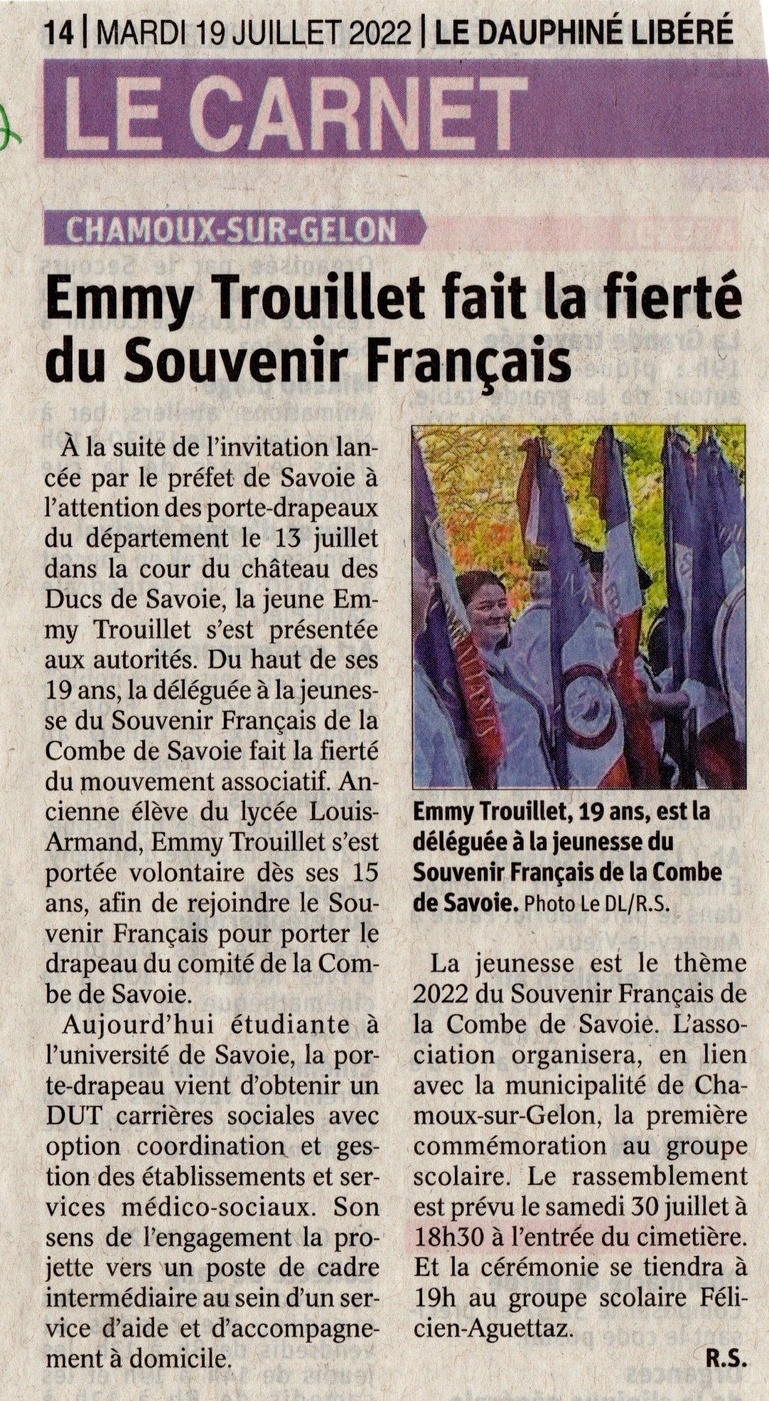 Aussi, devant la douloureuse épreuve que traverse, en ce moment, sa famille et ses amis, les membres du bureau de la délégation Générale du Souvenir Français de Savoie, leur adressent toute sa profonde sympathie et soutien. Nous ne l’oublierons pas.
