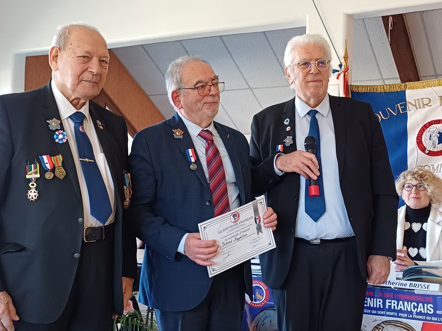 HenriGotrro et Jean-Yves Sardella ont rermis à Roland Magdinier la médaille d'argent du Souvenir Français.