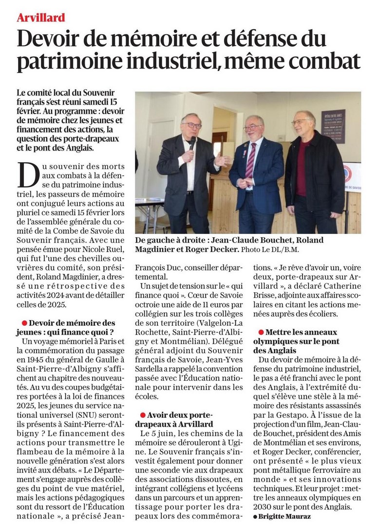 L'assemblée annuelle du comité s'est déroulée le samedi 26 février à Saint Pierre d'Albigny en présence de Frédéric Mareschal délégué général du Souvenir Français de Savoie