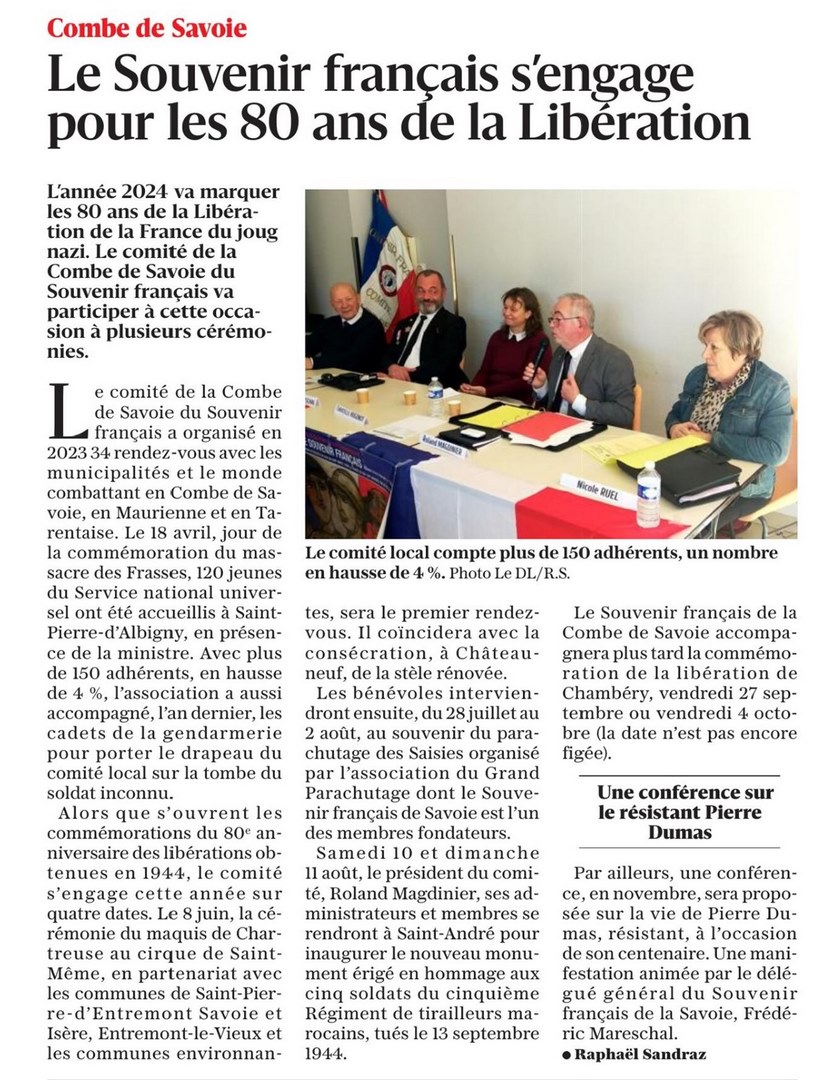 Le président du comité, Roland Magdinier, après un hommage à Nicole Ruel, trésorière décédée en septembre, et aux membres de son comité disparus en 2024, a fait le bilan moral de l'année 2024. Une année très riche en évènements liés au 80° anniversaire de la libération,puis il présenta le bilan financier avant de donner la parole à J.Y Sardella qui fit le bilan des activités, passées et futures, de la délégation.