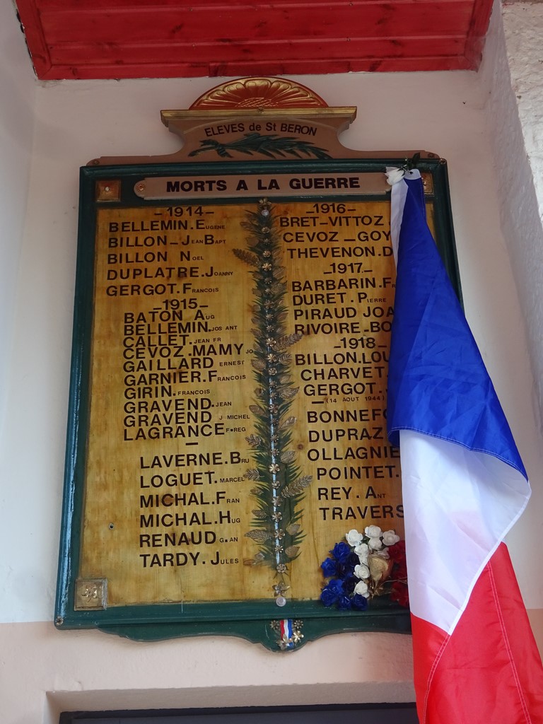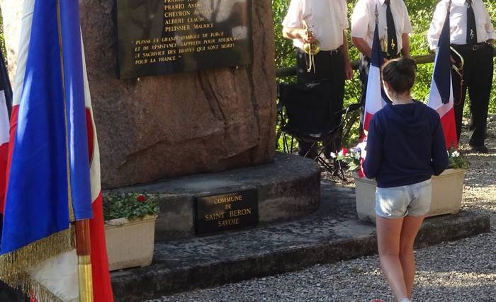 Lundi 14 août 2017 première sortie pour le tout nouveau Comité du Souvenir Français de Saint Béron. En présence de Jean-Noël Parpillon, délégué Général de la Savoie, de plusieurs comités de Savoie et de l'Isère, de nombreuses associations d’anciens combattant, de 36 porte-drapeaux et d’un nombreux public, sous un soleil d’été.