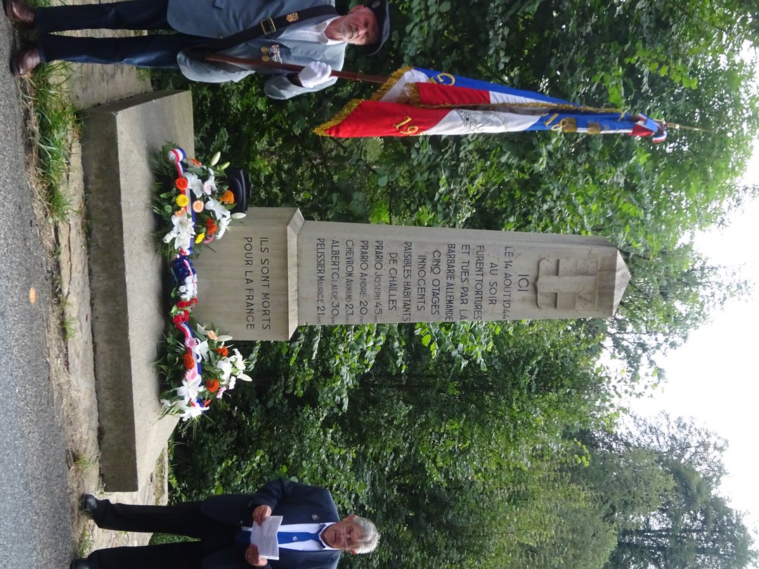 Dans leur rage de se faire décimer par une poignée de braves, l’ennemi se vengea sur les habitants du petit hameau de Chailles et sans autre forme de procès fusillèrent les habitants. Leurs noms sont gravés dans la pierre de la stèle.