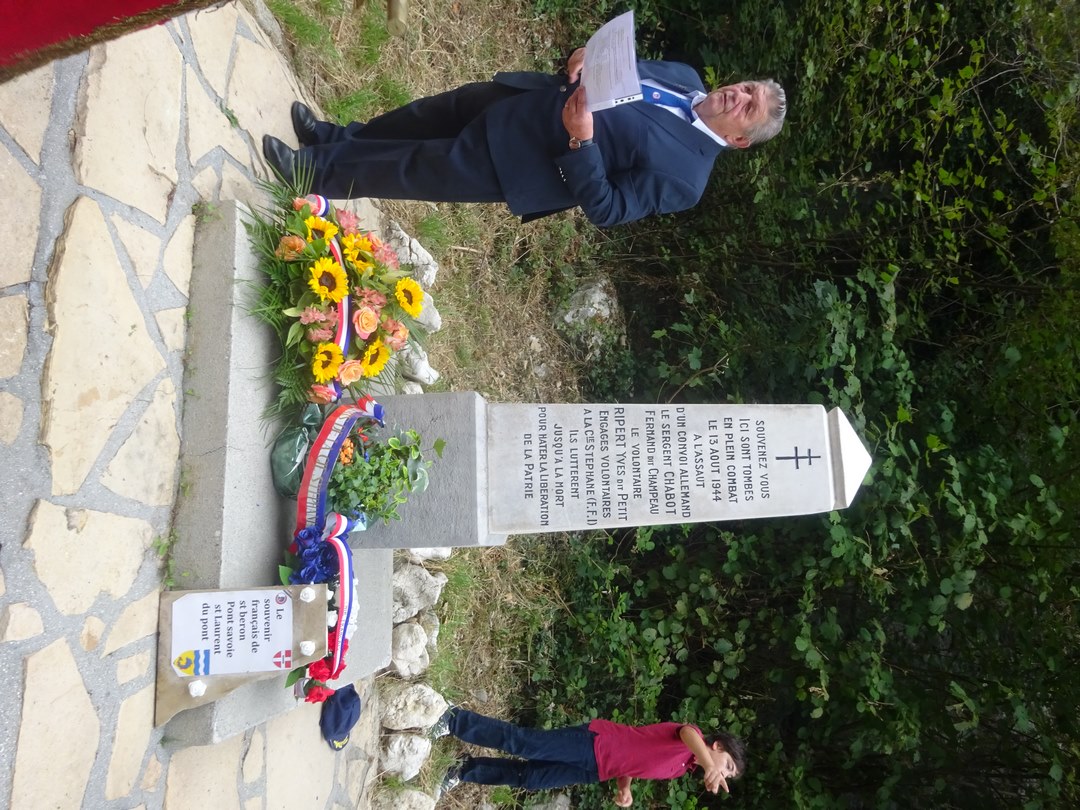 Lundi 14 août 2023, en présence des maires des communes des Echelles, Saint Franc et Saint Béron, de la compagnie Stéphane, de la Délégation Générale de Savoie, Henri Gottero et Jean-Yves Sardella, délégués généraux adjoints, représentant Frédéric Mareschal, de plusieurs comités de Savoie et de l'Isère, de nombreuses associations d’anciens combattants, de nombreux porte-drapeaux et d’un public recueilli, se sont déroulées les cérémonies mémorielles sur trois sites emblématiques de la libération de la région : Col de Coux (tunnel des Echelles), les Gorges de Chailles et St Béron. Le tout régenté par Jean Chautard président du Comité de St Laurent du Pont et Daniel Barral président du Comité de St Béron.