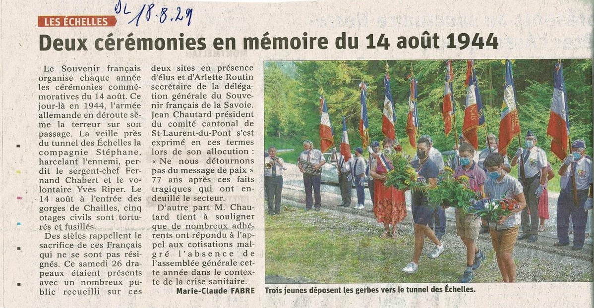Au Tunnel des Echelles, les dépôt de gerbe ont été effectués par le 1er adjoint au maire de Saint Christophe la Grotte, la Compagnie Stéphane et le Souvenir Français.