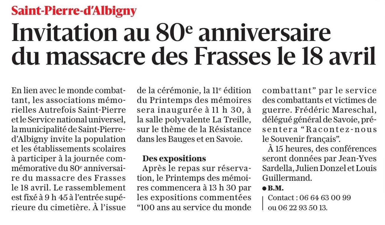 ce 8 mai 2021, s'est déroulée, au monument aux Morts de la Motte Servolex, la cérémonie du 76ème anniversaire du 8 mai 1945, en présence des autorités civiles et militaires, des associations mémorielles et des porte-drapeaux. Le Souvenir Français était représenté par Laurent Grillaud, président du comité local et porte-drapeau.