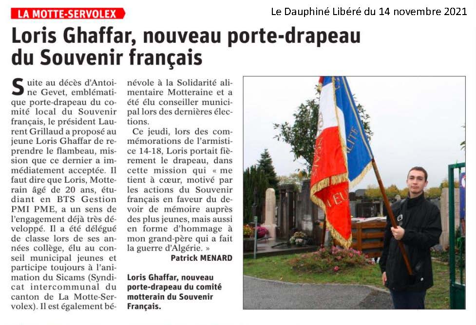 La délégation générale du Souvenir Français de Savoie était présente, ce jour 19 mars 2023, auprès du tout nouveau jeune président du comité de La Motte - Servolex, Loris GHAFFAR, 21 ans, pour sa première cérémonie officielle Malgré une certaine appréhension dû à cette nouvelle fonction, Loris fit preuve de prévenance et d’efficacité au bon déroulé de la cérémonie.