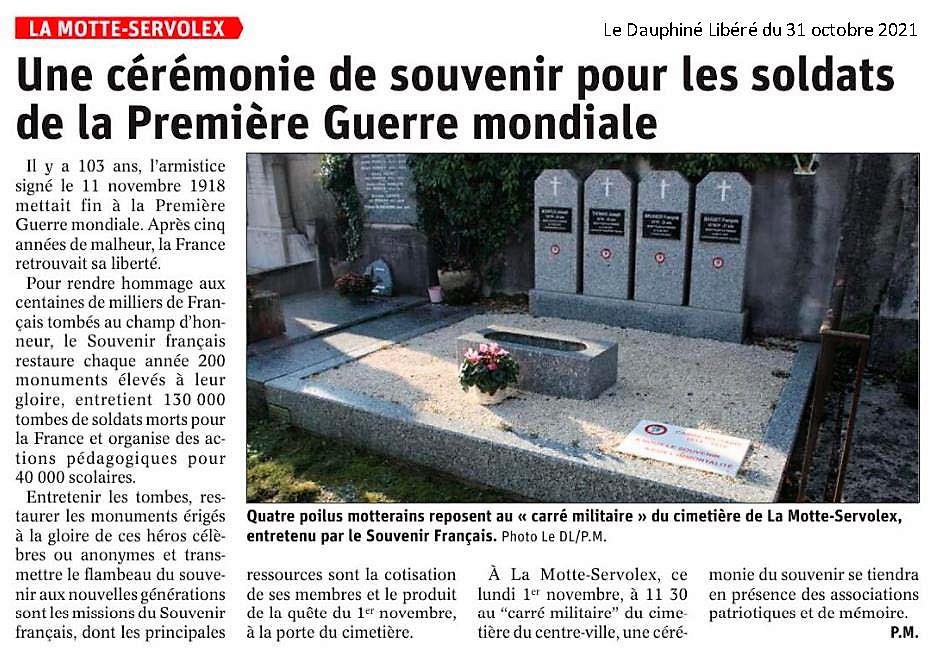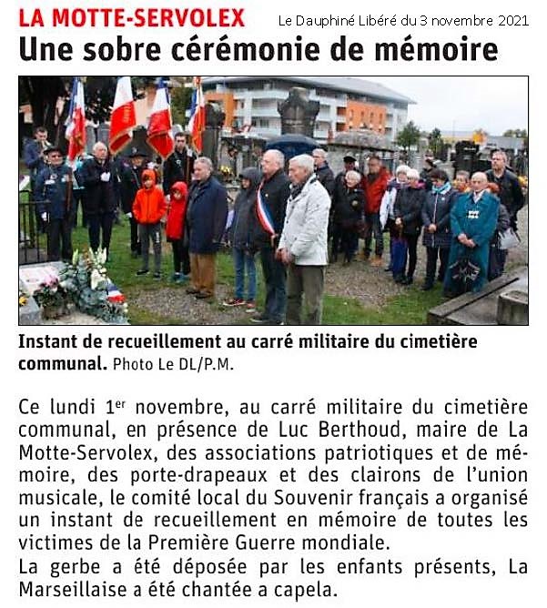 Lundi 1er novembre une cérémonie mémorielle s'est déroulée au carré militaire du cimetière de La Motte Servolex.