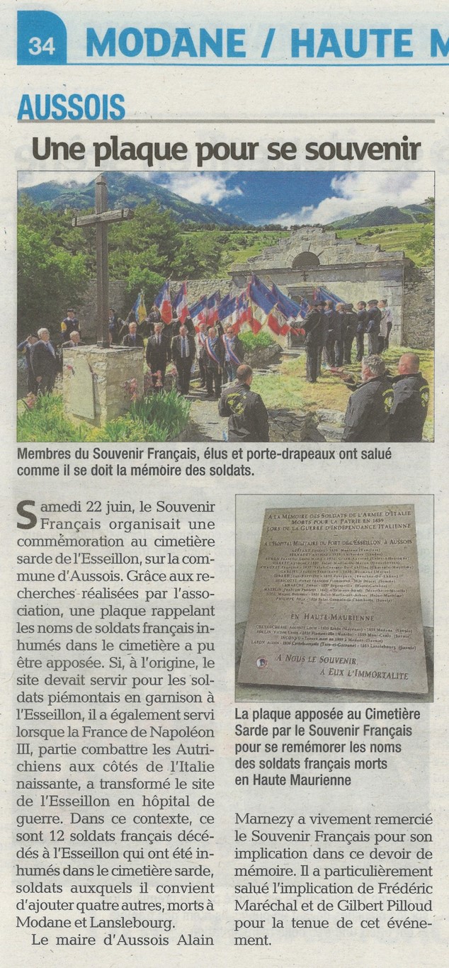 A noter que ce conflit armé de 1859 fut de courte durée, du départ des troupes en avril jusqu’au 11 juillet 1859, mais particulièrement meurtrier, de part et d’autre. Cette armée d’Italie rentrera à Paris le 14 août 1859. Un certain nombre de blessés lors de cette campagne d’Italie sont décédés et inhumés au cimetière des forts de l’Esseillon à Aussois