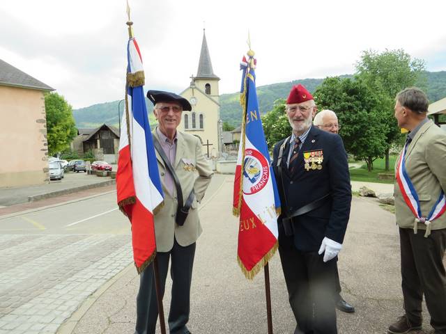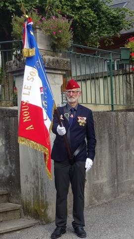 Jean-Pierre Durot, porte-drapeau du comité de Montmélian, était aussi à Ste Hélène en compagnie du porte-drapeau de la commune et du maire.
