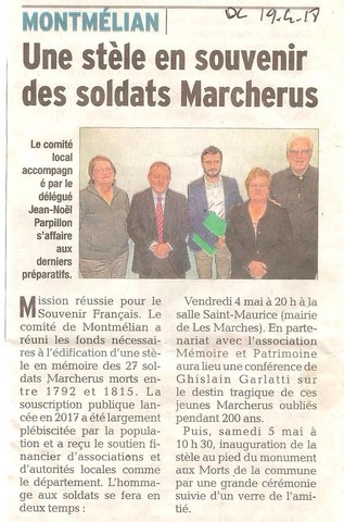 Le comité de Montmélian honorera les 27 soldats Marcherus morts à la guerre entre 1792 et 1815. Ce sera une première pour cette période de notre histoire.