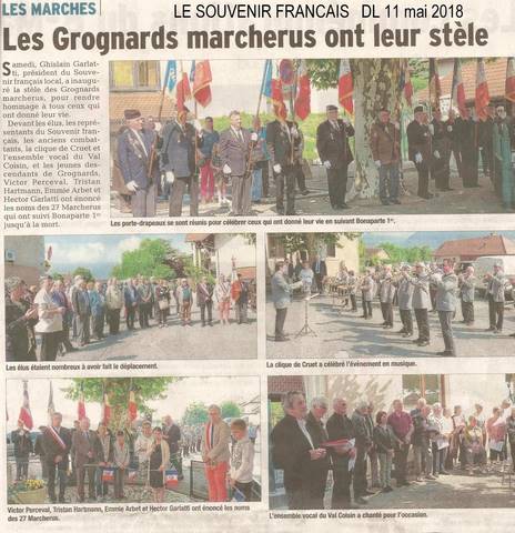 Le samedi 5 mai avait lieu l’inauguration de la stèle aux 27 noms des soldats morts « Pour la Patrie » 1792-1815, en présence de nombreuses personnalités : de 19 porte-drapeaux, dont un du Souvenir napoléonien.