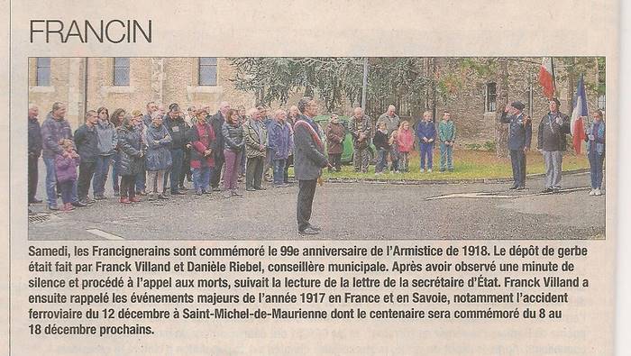 A cette occasion, étaient présents madame Tallin, Conseillère Départementale, madame Santais, maire de montmélian, monsieur Franck Villand, maire de Francin, Monsieur Jean-Noël Parpillon, Délégué Générale du Souvenir Français de Savoie, Monsieur Ghislain Garlatti, président du Comité du Souvenir Français de Montmélian, des portes-drapeaux, associations d’Anciens Combattants et d’un nombreux public.