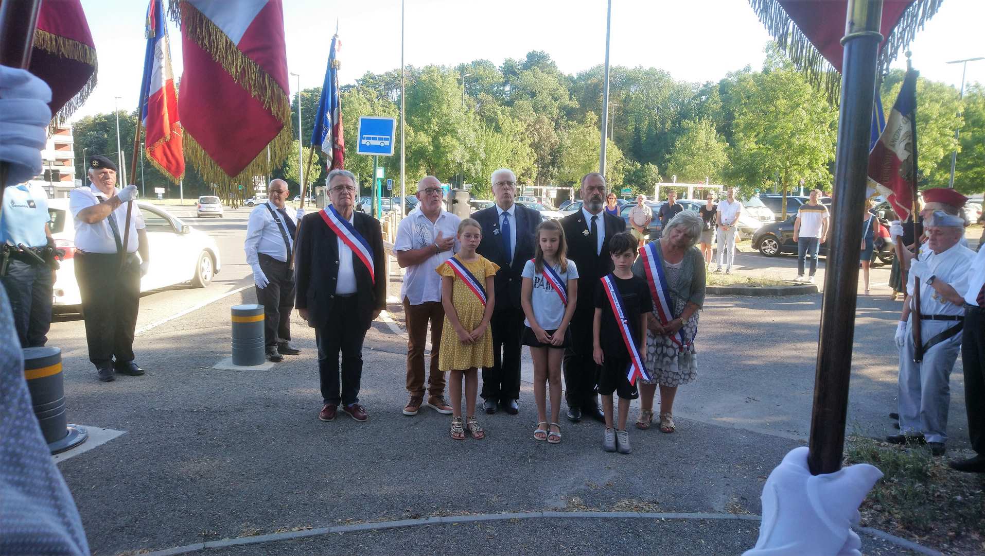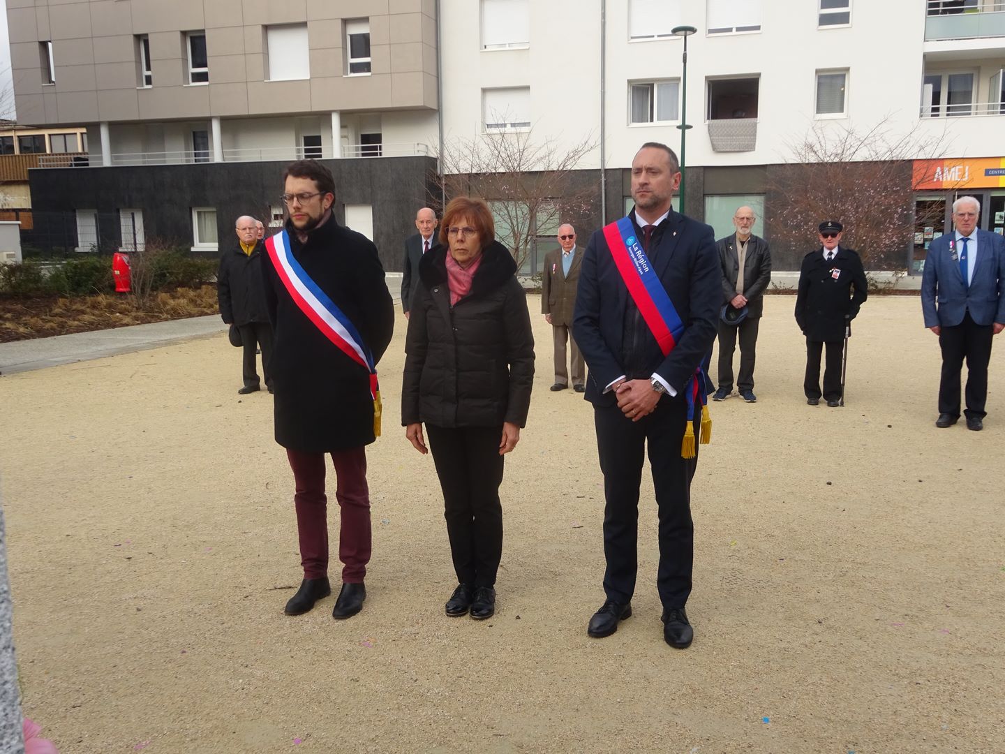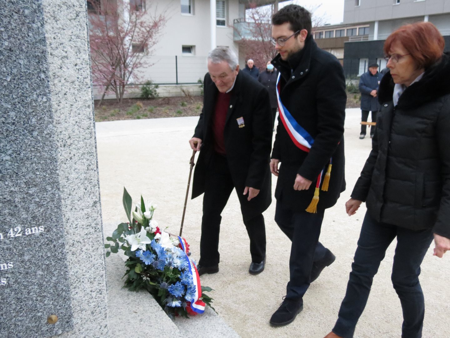 Après lecture du message officiel de Mme Geneviève Darrieussecq, secrétaire d'Etat aux Anciens combattants, une gerbe a été déposée par Mme Nathalie Laumonnier, conseillère municipale déléguée au handicap et à la transmission de la mémoire et par Messieurs Bertola et Boix-Neveu.