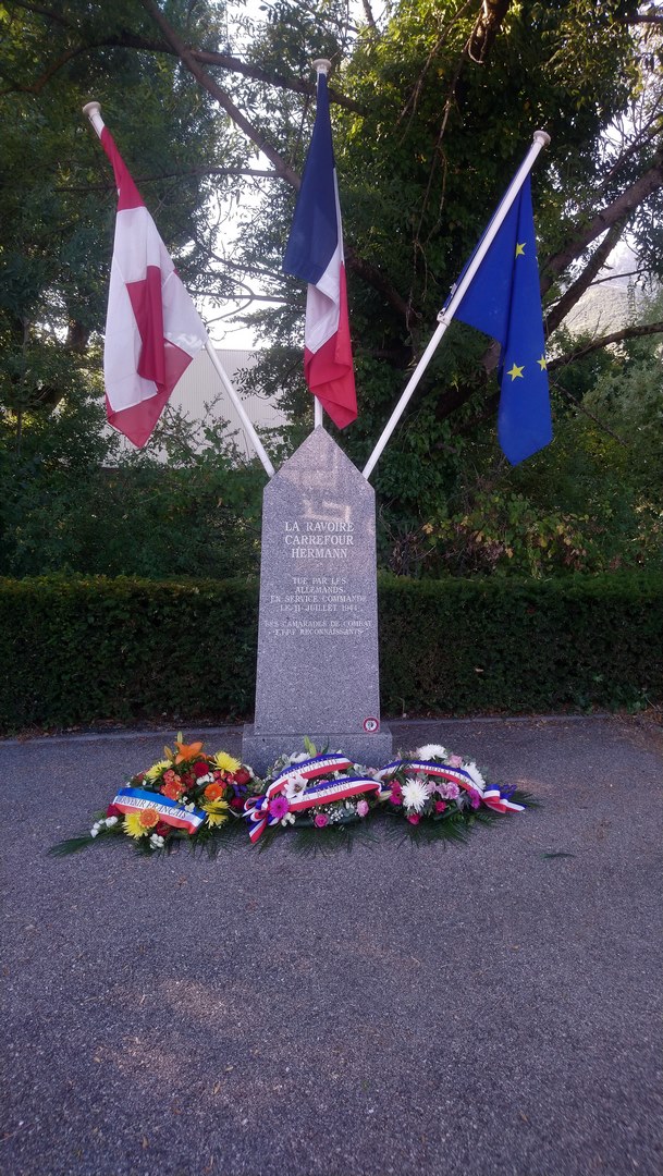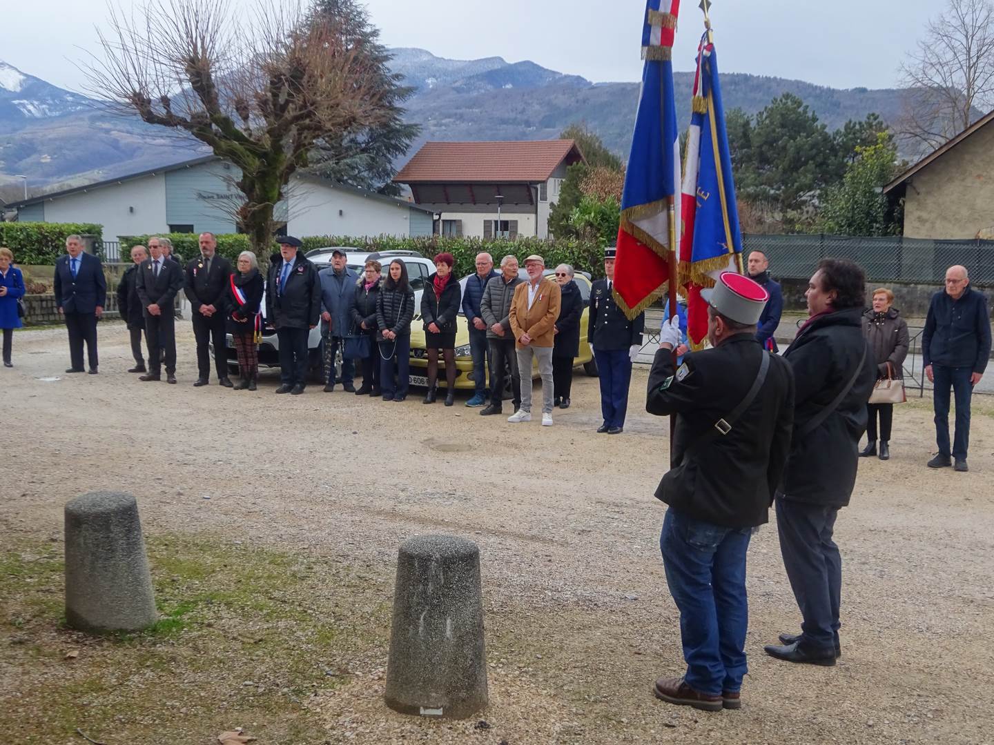 En raison des travaux au carrefour de la Trousse où se trouve la stèle, la cérémonie s'est déroulée au monuments aux Morts, au cimetière de La Ravoire.