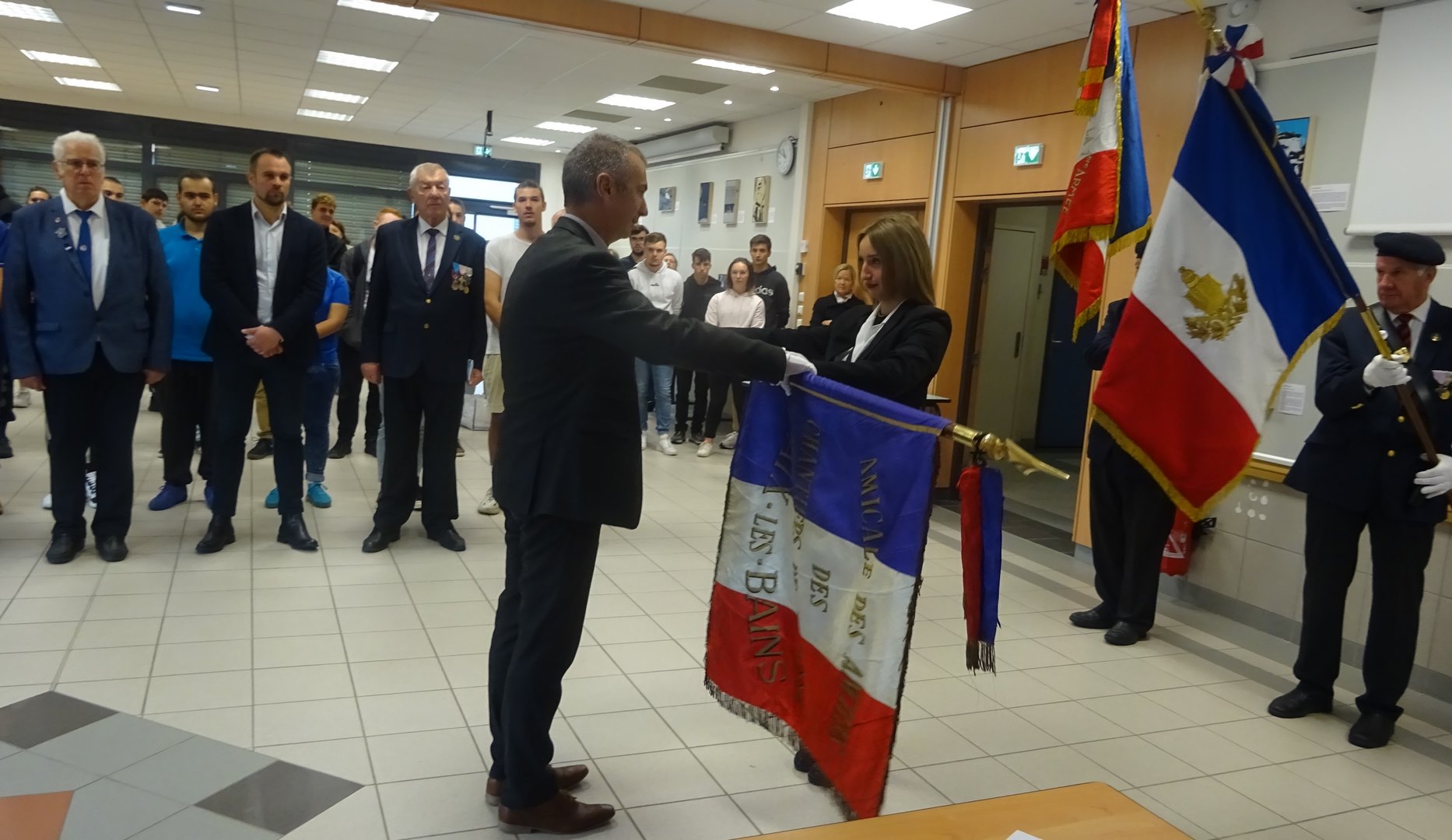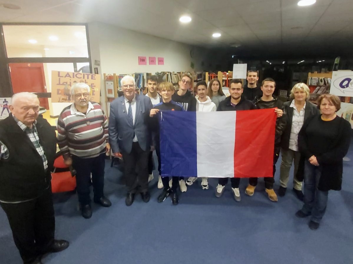 Le drapeau des Chantiers de Jeunesse (groupe 13 d’Aix les Bains) fut transmis par Bernard Eme, ancien combattant d’Aix les Bains et adhérent du Souvenir Français, à la jeune Léa Padel, éléève de terminale de la classe « défense » et nouvelle porte-drapeau. L’hymne nationale clôtura cette cérémonie.