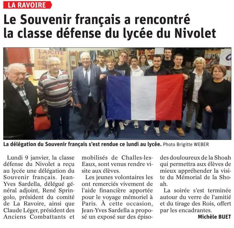 Lundi 9 janvier 2023, la classe défense du Nivolet a reçu au lycée une délégation du Souvenir français dans le cadre de la préparation de leur voyage mémoriel à Paris.