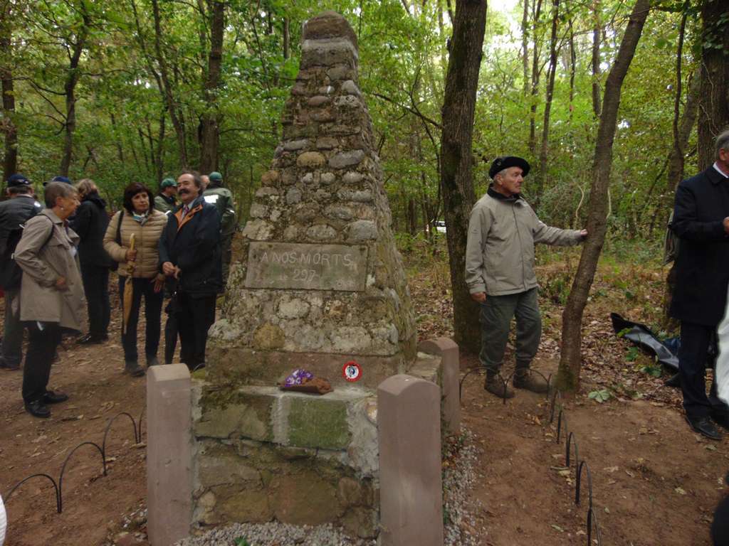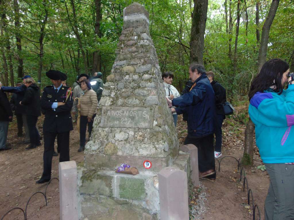 « Une émouvante cérémonie s’est déroulée samedi, en pleine forêt entre Steinbach et Vieux-Thann. Là, à l’extrémité de la Cote 425, s’élève un petit monument en forme de pyramide marquant l’emplacement de l’ancien cimetière du 297e Régiment d’Infanterie. »(Journal du Ht-Rhin-3 oct. 2016)