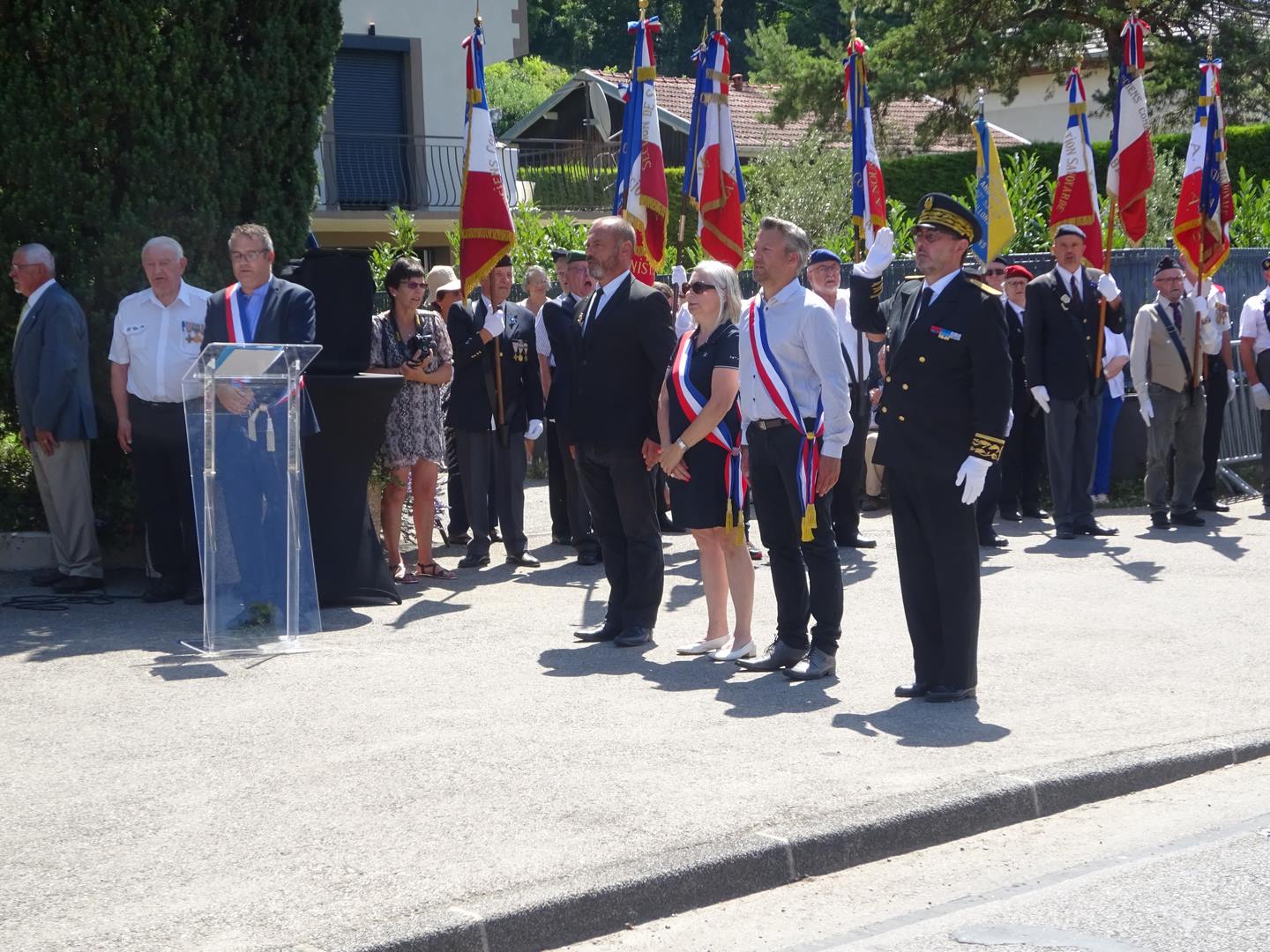 - - des associations mémorielles, Anciens Combattants, Souvenir Français, de familles des fusillés, des porte-drapeaux venus du Valromey ainsi que de la Savoie.
