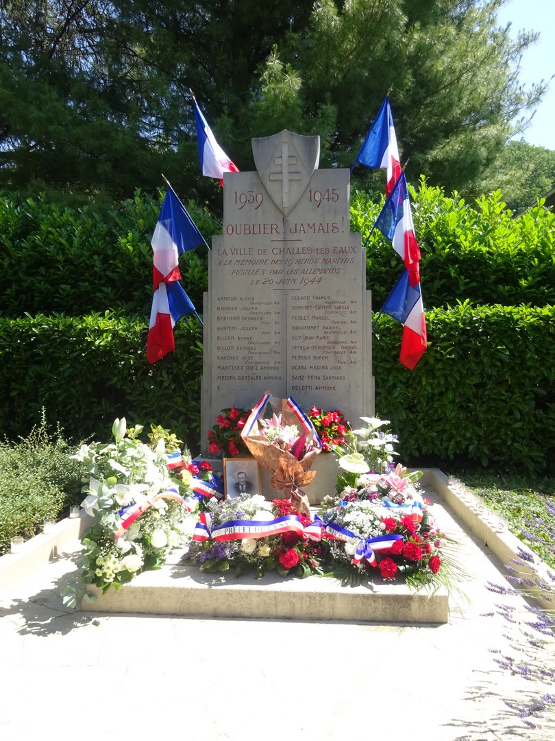 A la mémoire des 19 otages du Valromey fusillés à Challes-les-Eaux le 20 juin 1944