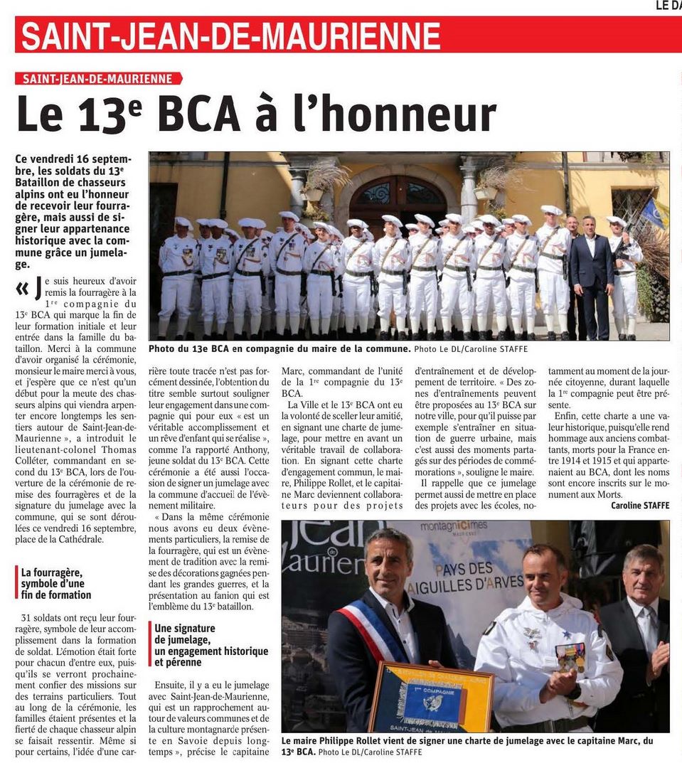 Vendredi 16 septembre 2022 à Saint Jean de Maurienne, les soldats de la 1erecompagnie du 13° BCA, a reçu la fourragère qui marque la fin de leur formation et leur entrée dans la famille du13° BCA.