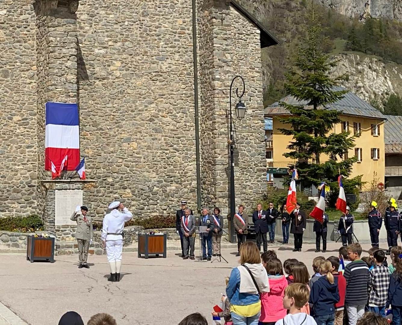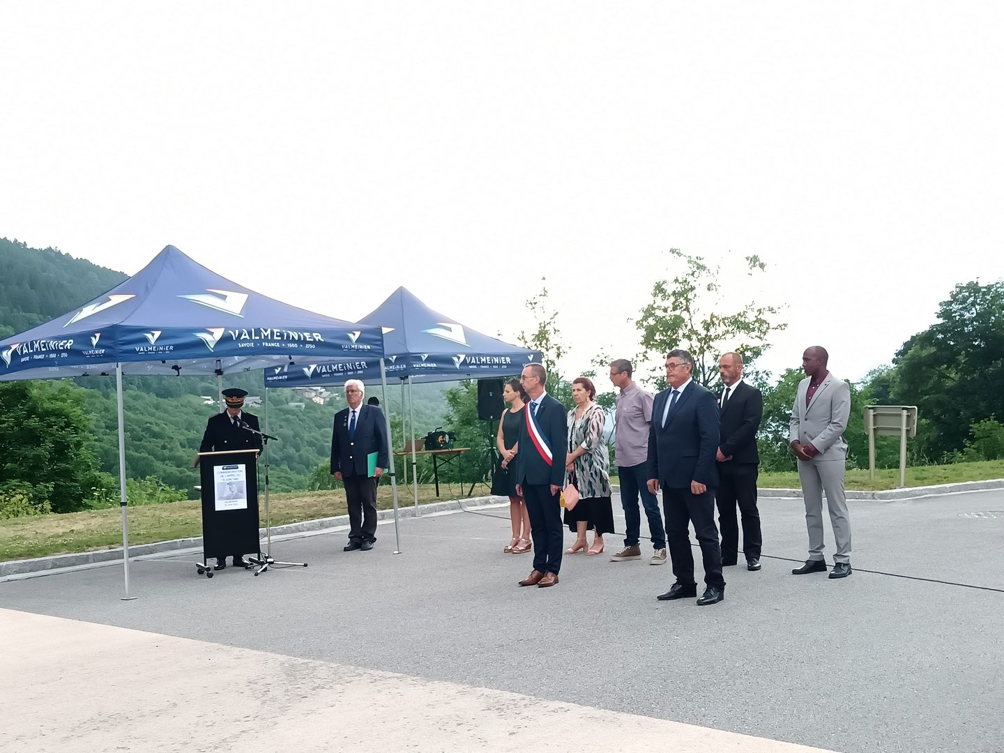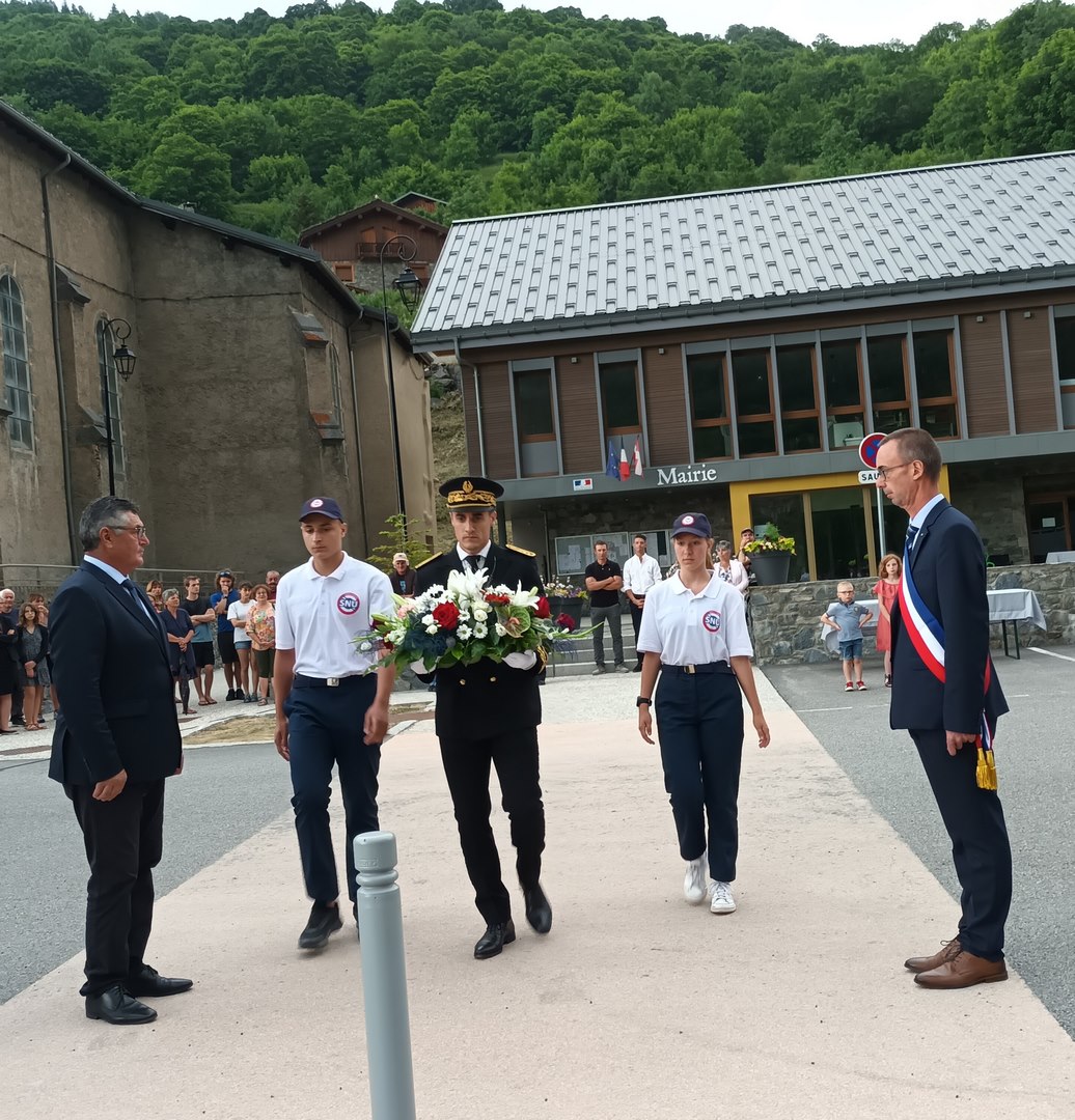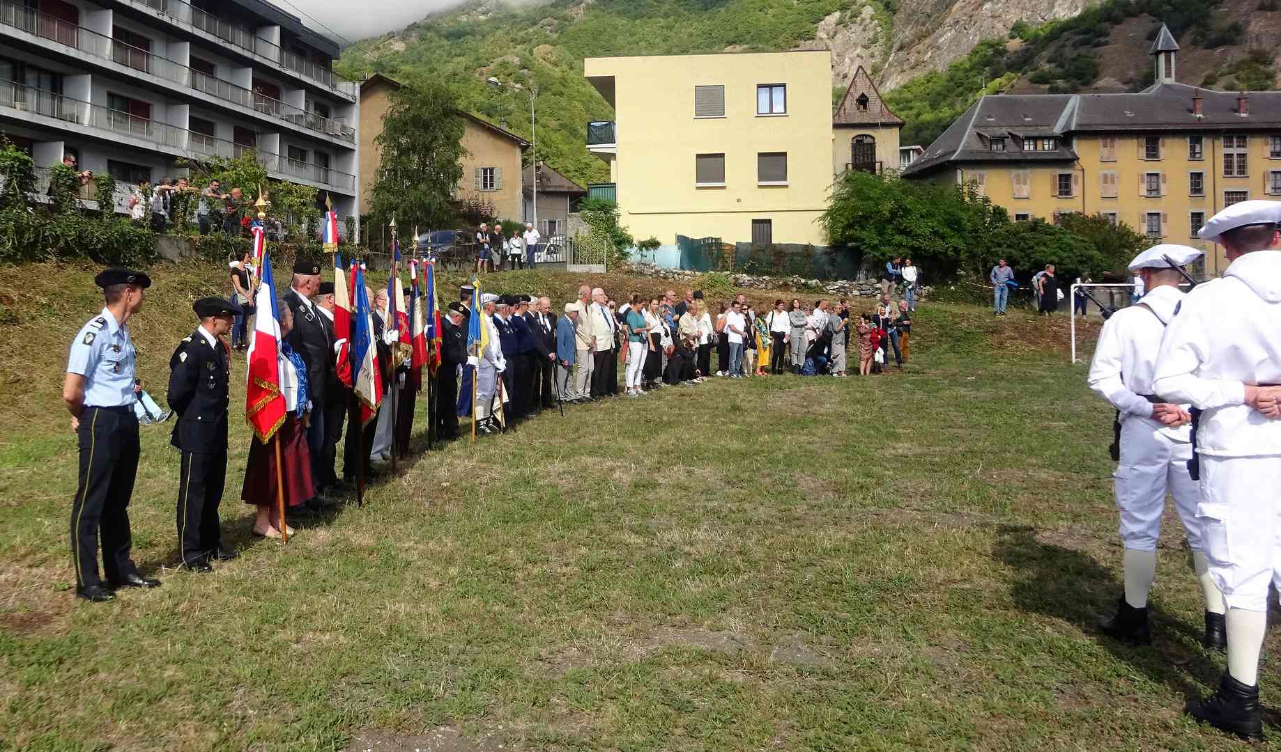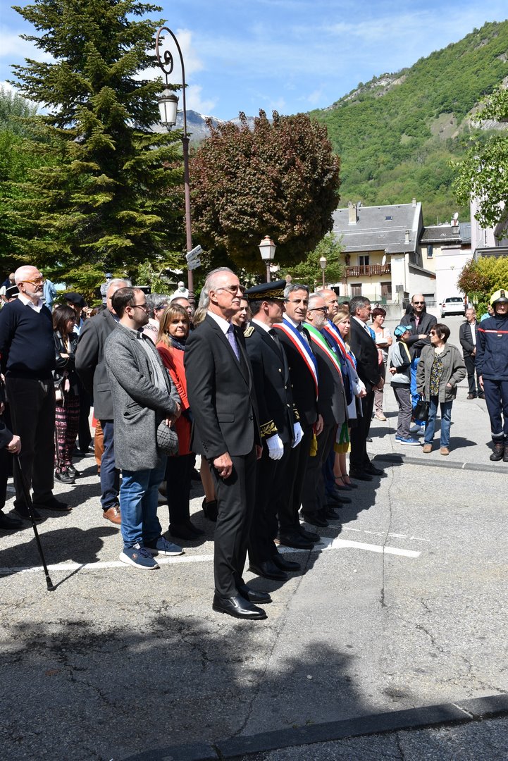 Cérémonie présidée par Monsieur le sous-préfet Kevin Poveda en présence de Mrs Christian Grange, vice-président du Conseil départemental, Alexandre Albrieux, maire de Valmeinier, Frédéric Mareschal, délégué général du Souvenir Français de Savoie, des pompiers, de la police municipale, du porte-drapeau Damien Thomasset et de nombreux Valmineux.