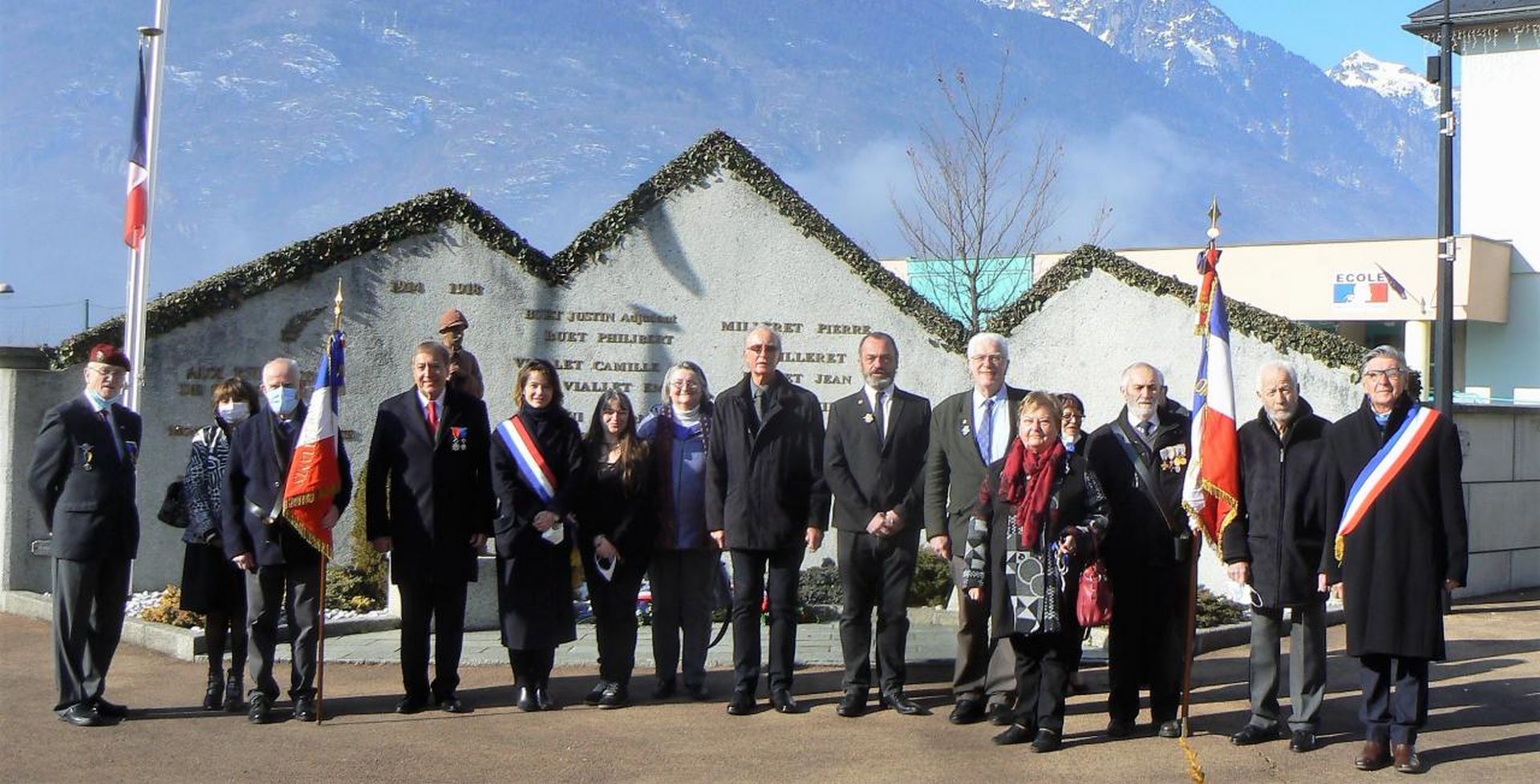 En présence de Monsieur le sous-préfet Kévin Poveda, de Philippe Rollet, maire de St Jean de Mne, de Marie Dauchy, conseillère régionale, d'élus de Saint Jean et de ses environs, de Pierre Gaden, président du comité du Souvenir Français de St Jean de Maurienne, des Anciens Combattants, des portes-drapeaux.